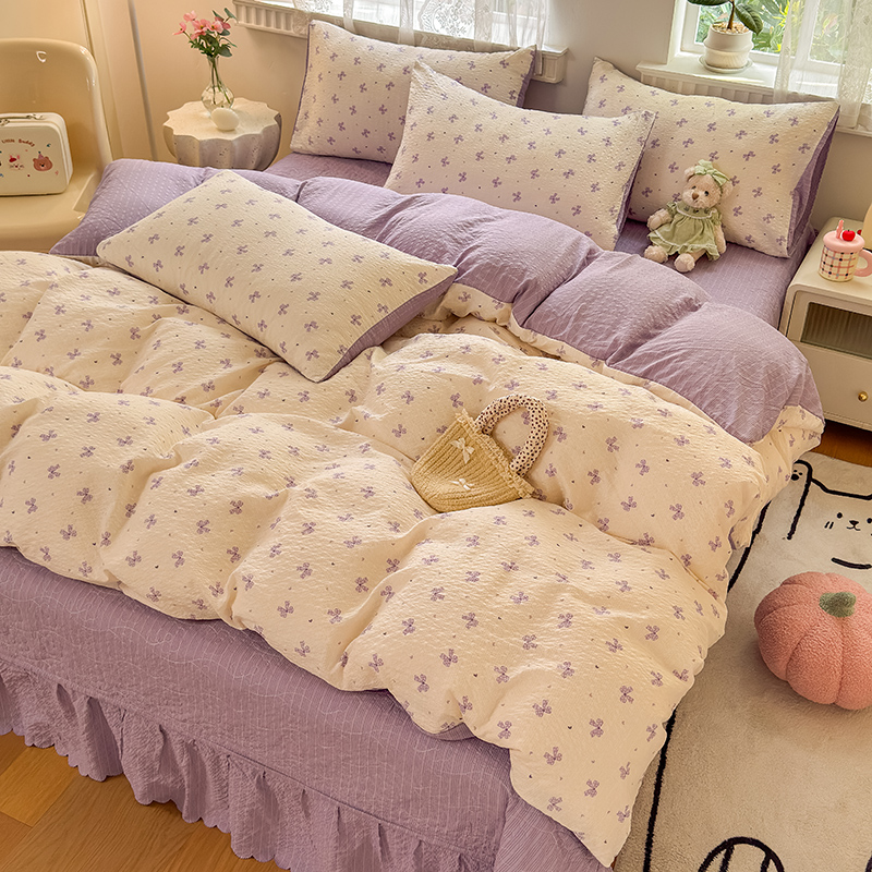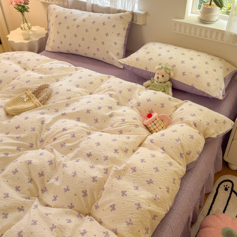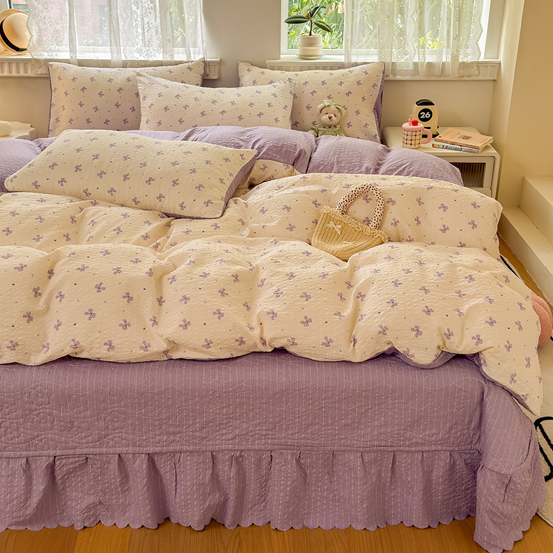 商品名称:凤杰家纺 2026新款云感双层纱床盖四件套 紫韵蝴蝶结