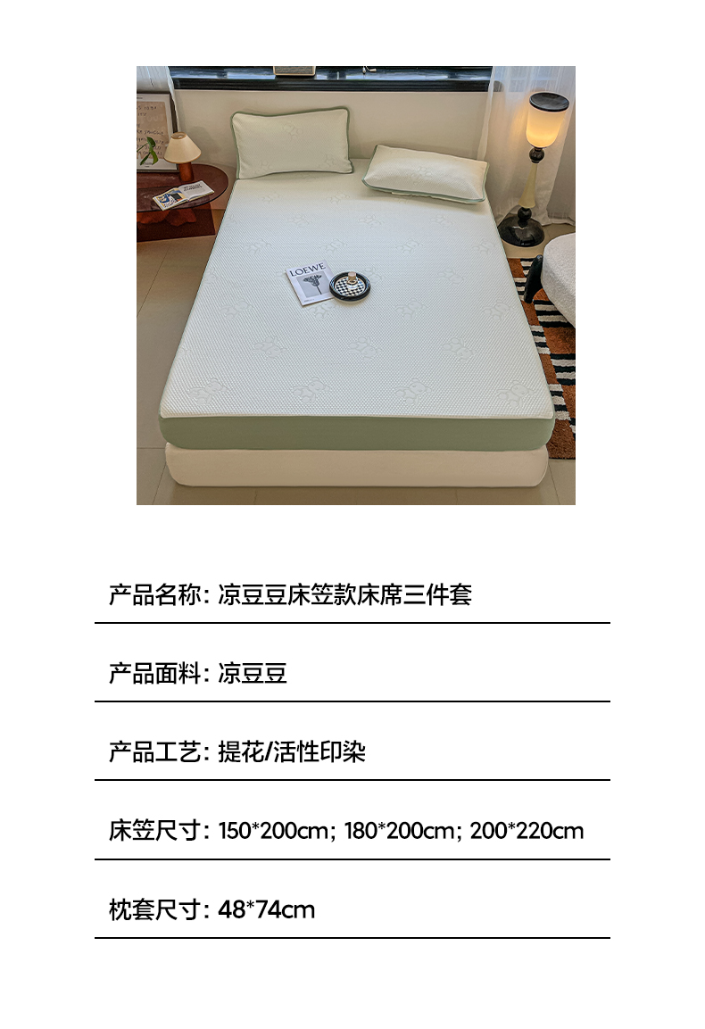 (总)悦织湾家纺 2026新款提花凉豆豆凉席三件套夏季3D豆豆席冰爽席子床笠款蝴蝶结小熊系列,暴力熊粉,暴力熊灰,暴力熊蓝,暴力熊绿,蝴蝶结粉,蝴蝶结灰,蝴蝶结蓝,蝴蝶结绿