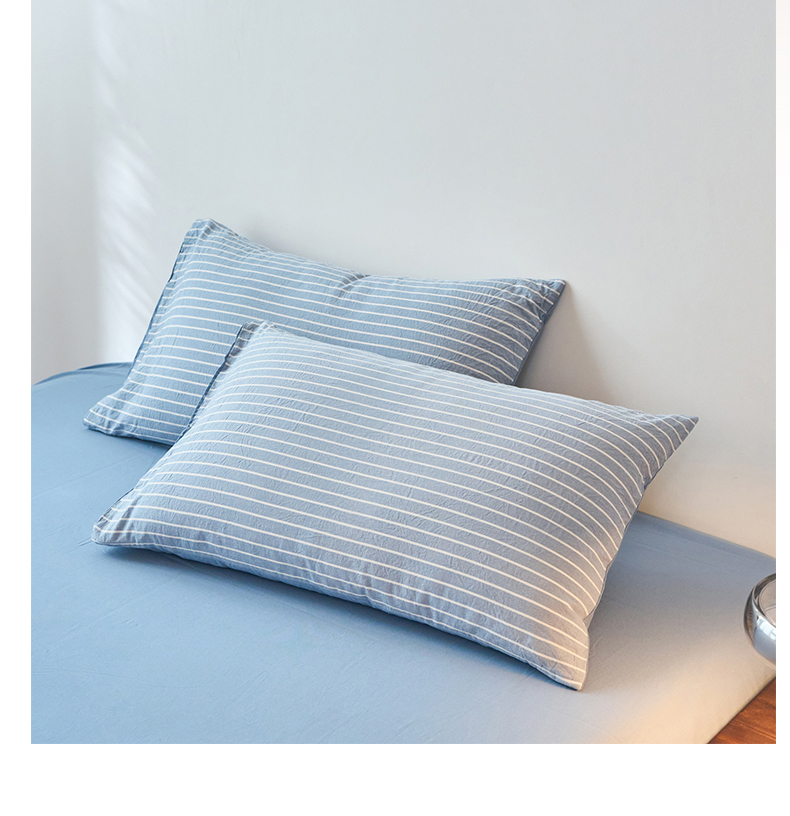 春皖家纺 2026春夏新款全棉水洗棉单枕套枕套单件单品枕套 素雅-蓝条