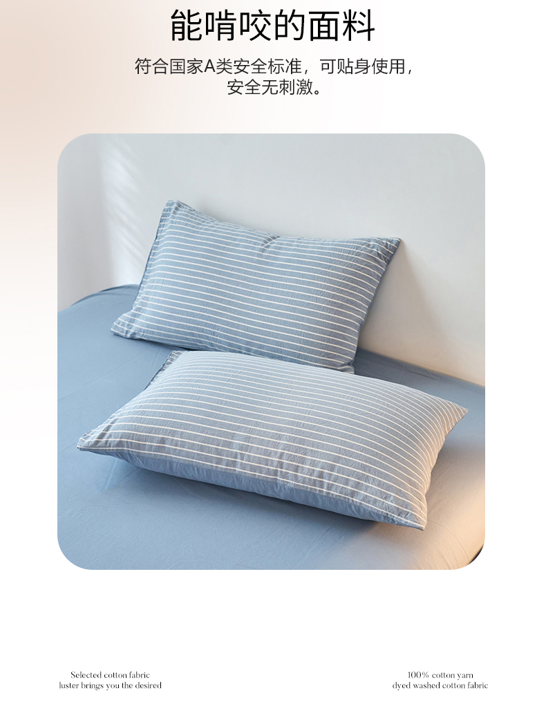 商品名称:春皖家纺 2026春夏新款全棉水洗棉单枕套枕套单件单品枕套 素雅-蓝条