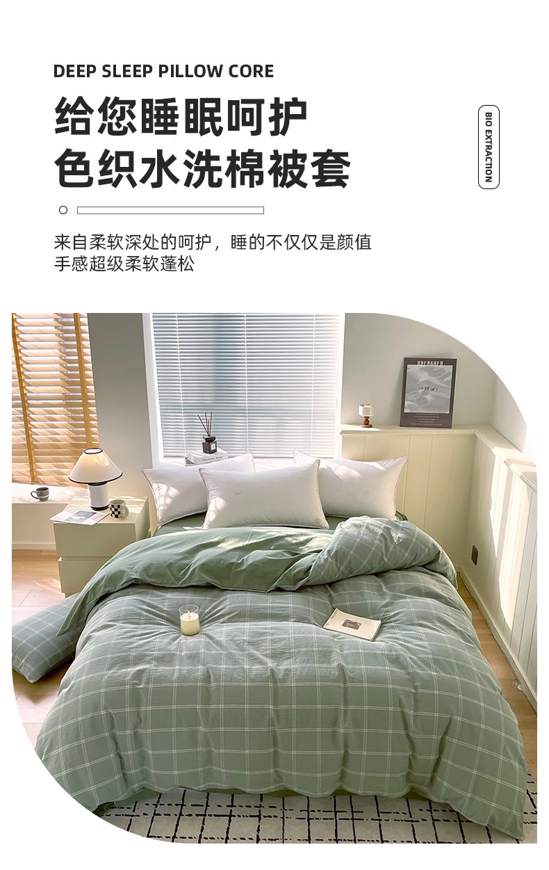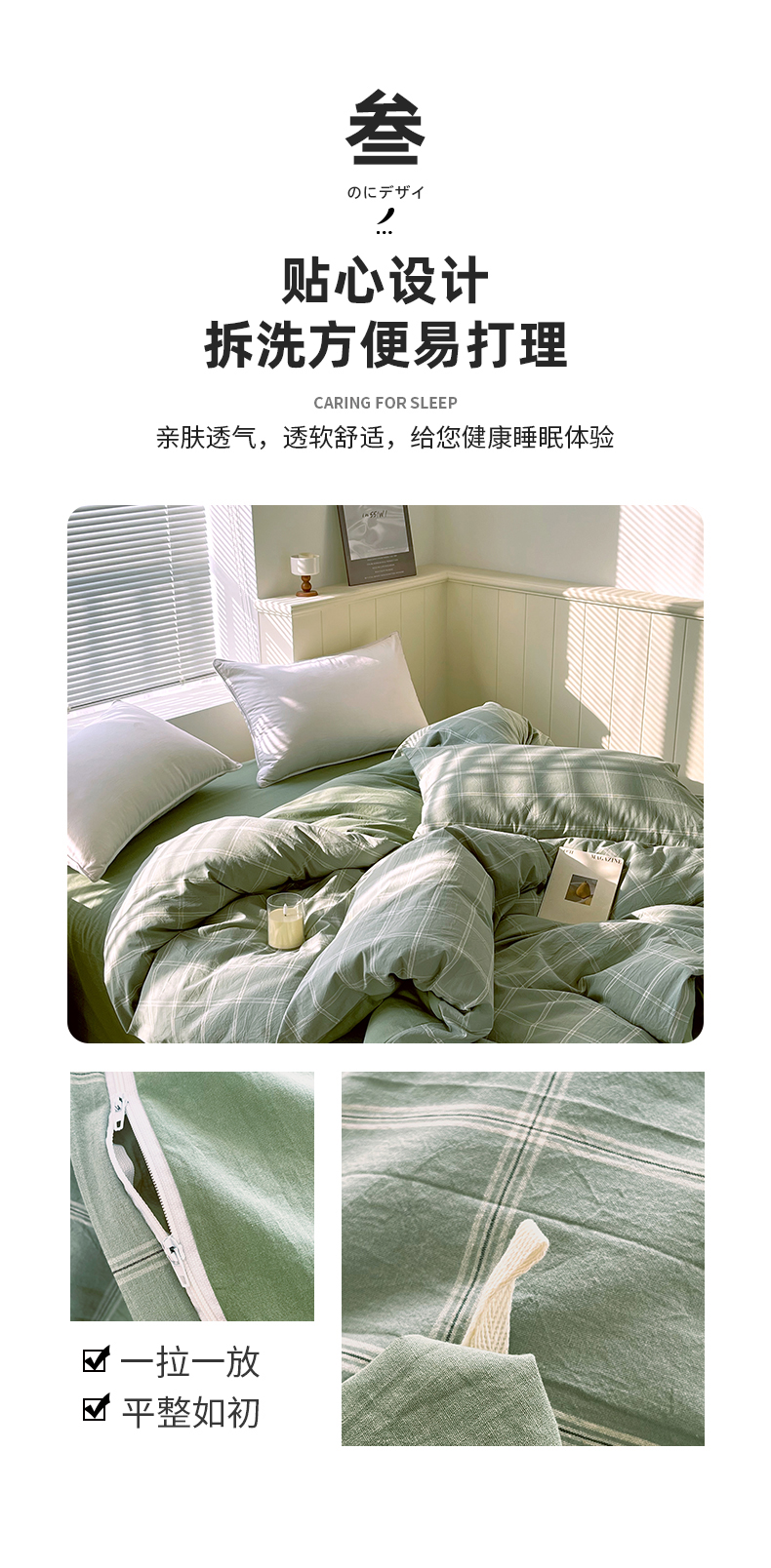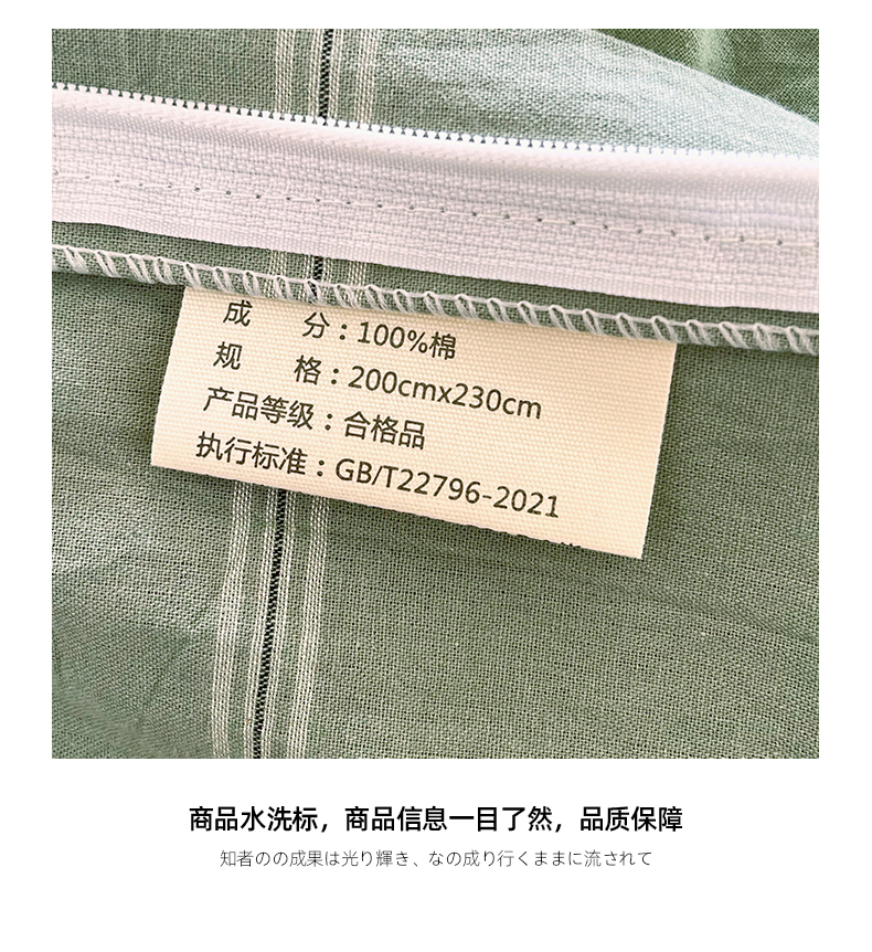 商品名称:春皖家纺 2026春夏新款全棉纯棉水洗棉单被套被套单件单品被套 素雅-韵绿