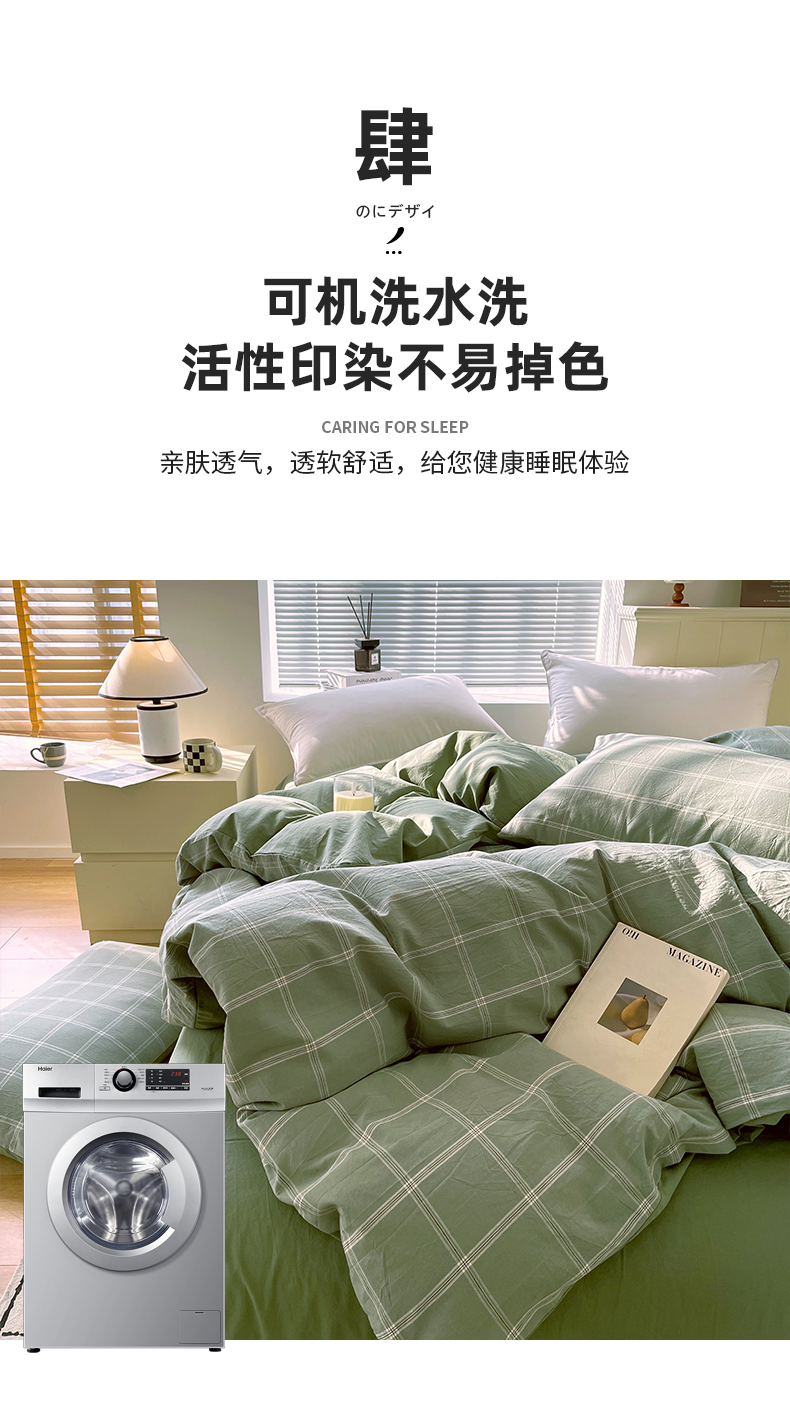 春皖家纺 2026春夏新款全棉纯棉水洗棉单被套被套单件单品被套 素雅-韵绿