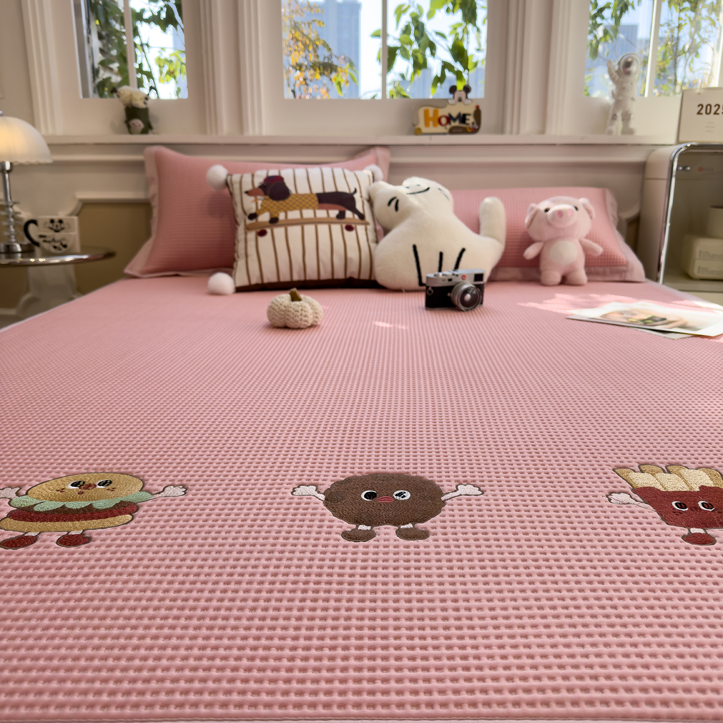 几禾 2026新款华夫格刺绣款席子凉席 可可喵派-床笠款