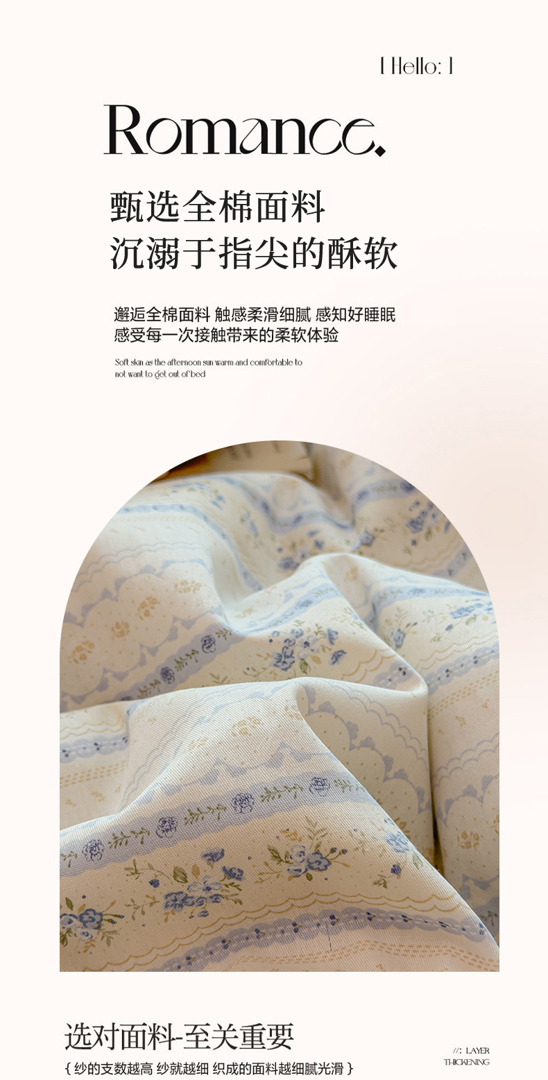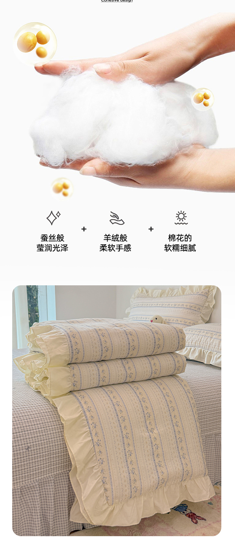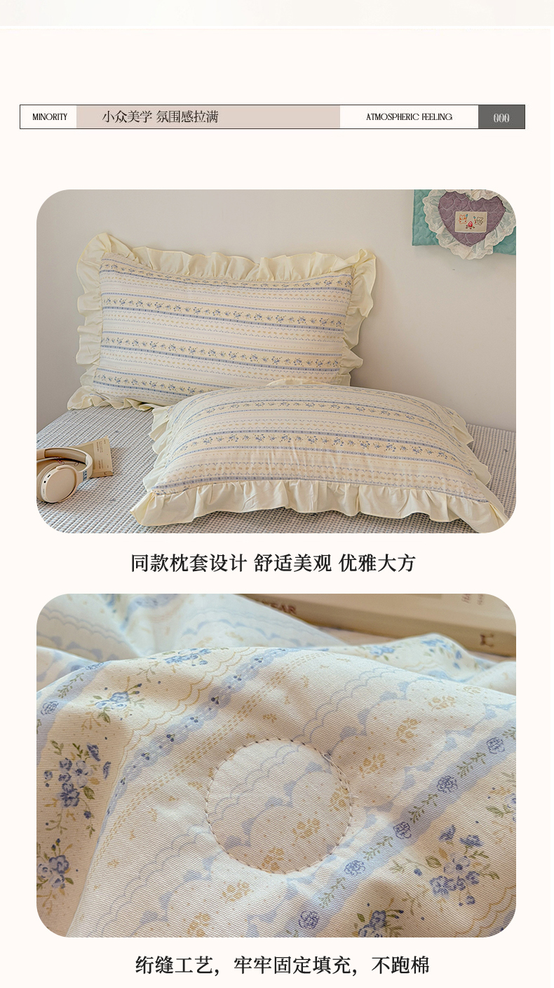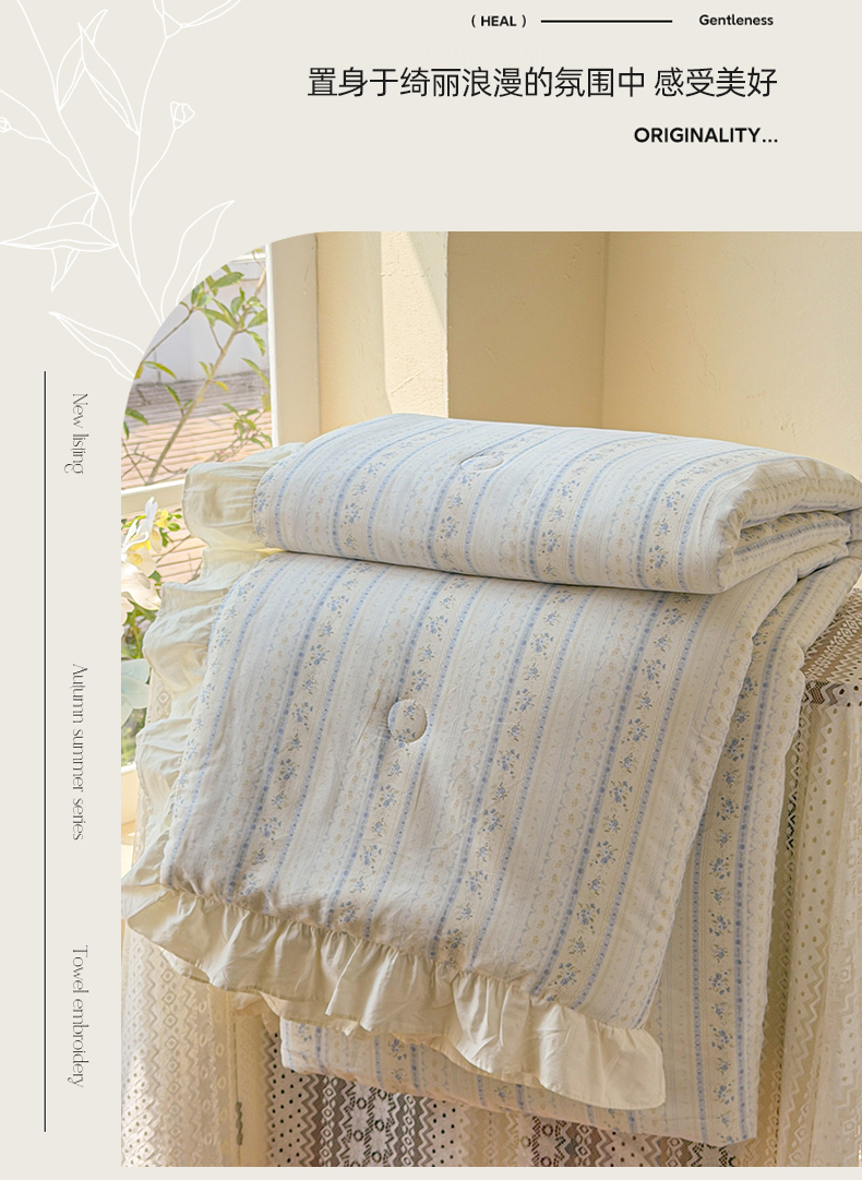 当前位置: 91家纺网 > 商品网购 > 床品套件 > 四件套 > 夏被四件套 > 简宜家居(朝初家纺) 2026新款全棉花边夏被全棉床盖夏被四件套 素条花-蓝