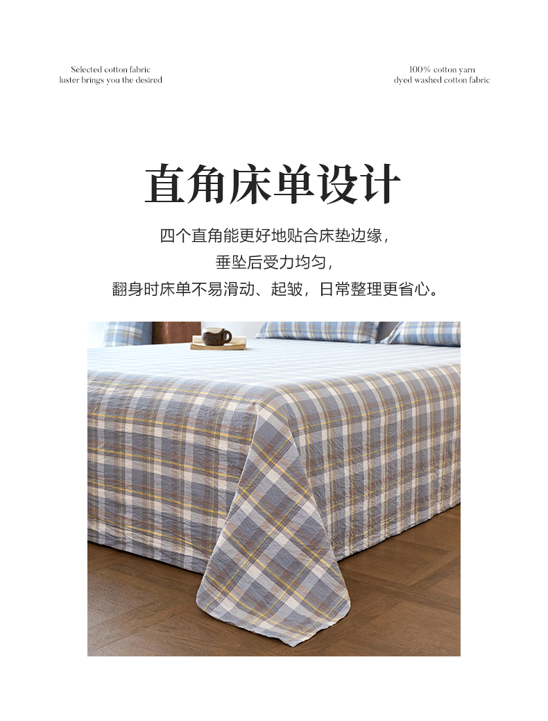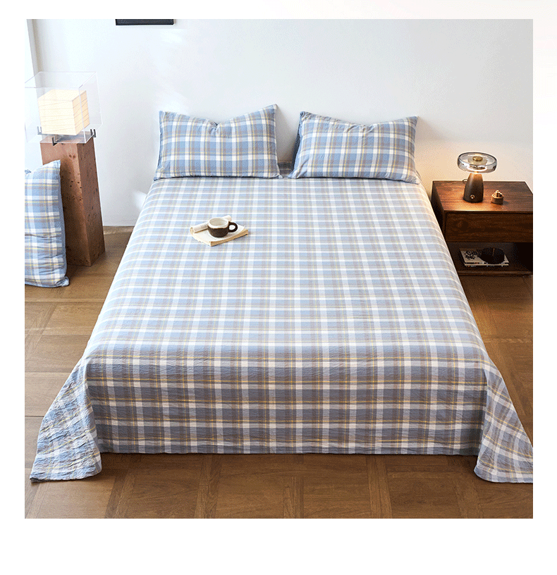 春皖家纺 2026春夏新款全棉纯棉水洗棉单品系列床单单件床单单品-A版单床单 素雅-蓝格