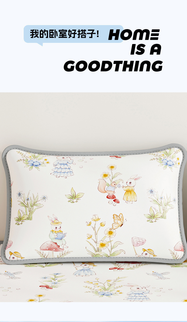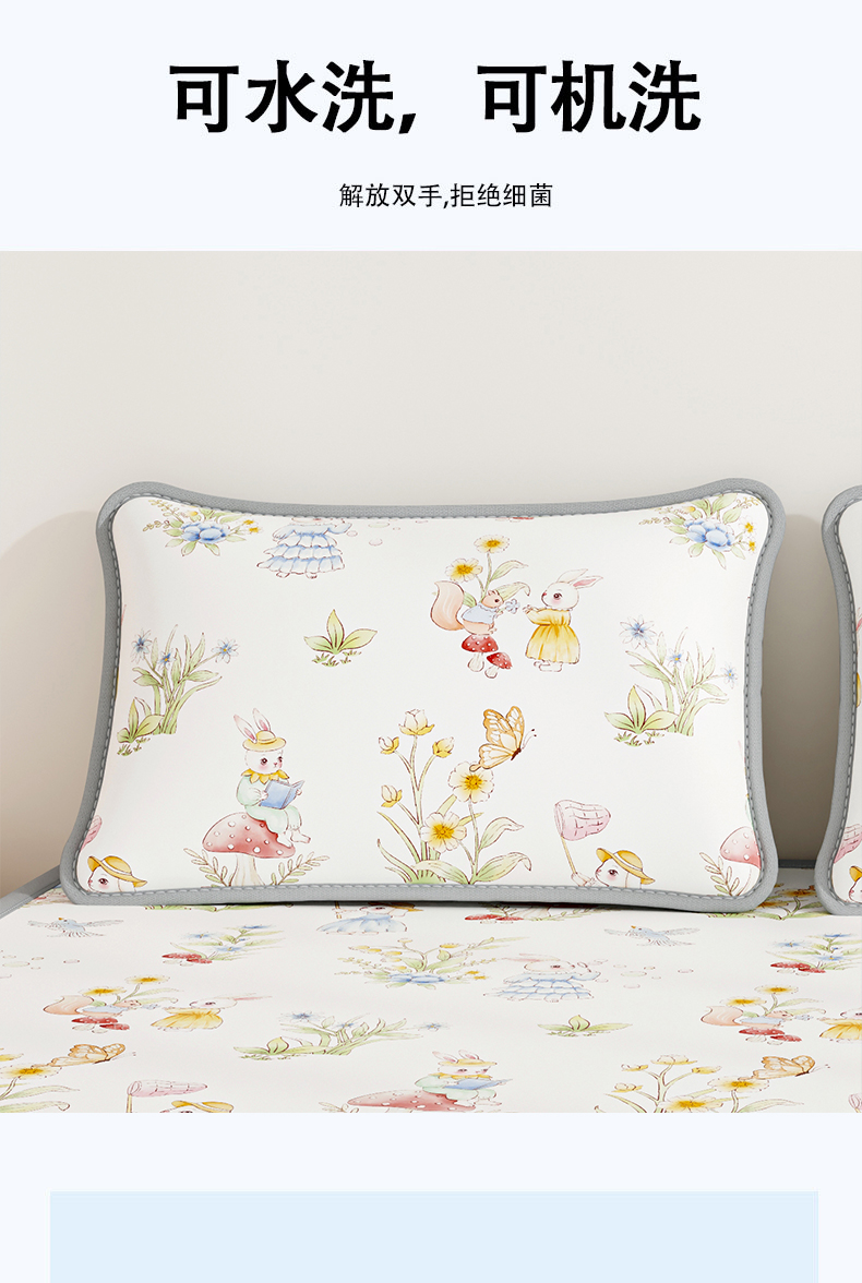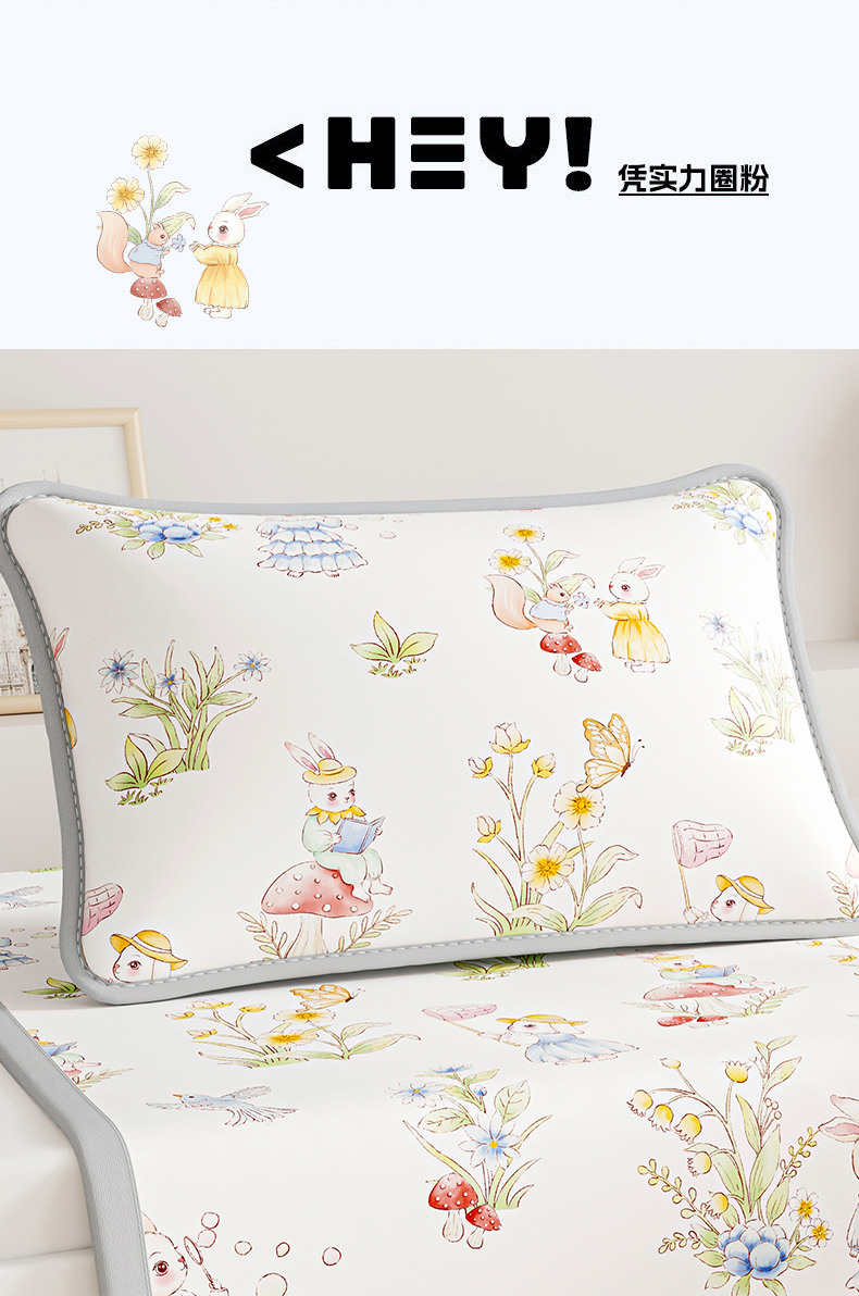 商品名称:奇丝雅 2026夏季A类数码印花卡通冰丝凉席枕套凉感家用儿童可机洗单人学生宿舍48×74 精灵小兔
