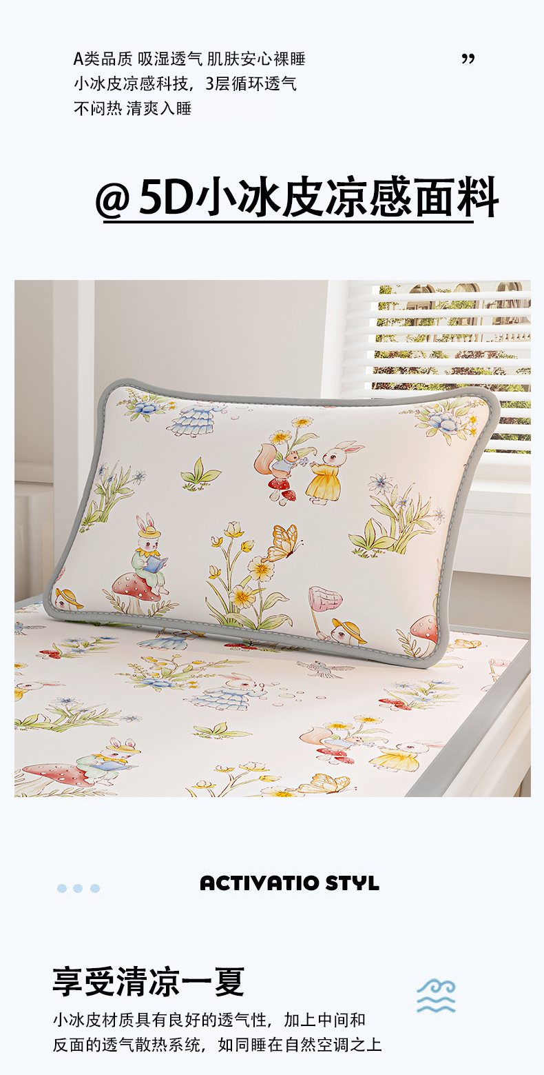 (总)奇丝雅 2026新款夏季A类印花冰豆豆凉席三明治透气网冰丝凉席可机洗学生宿舍上下铺学生床,巴比兔,抱抱熊,饼干熊,海洋世界,卡皮巴拉,蘑菇乐园,甜甜圈,兔宝贝,维尼熊,小企鹅,熊猫家园,叶语