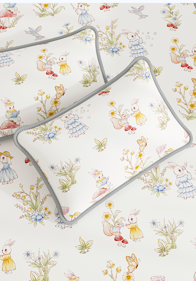 奇丝雅 2026夏季A类数码印花卡通冰丝凉席枕套凉感家用儿童可机洗单人学生宿舍48×74 精灵小兔