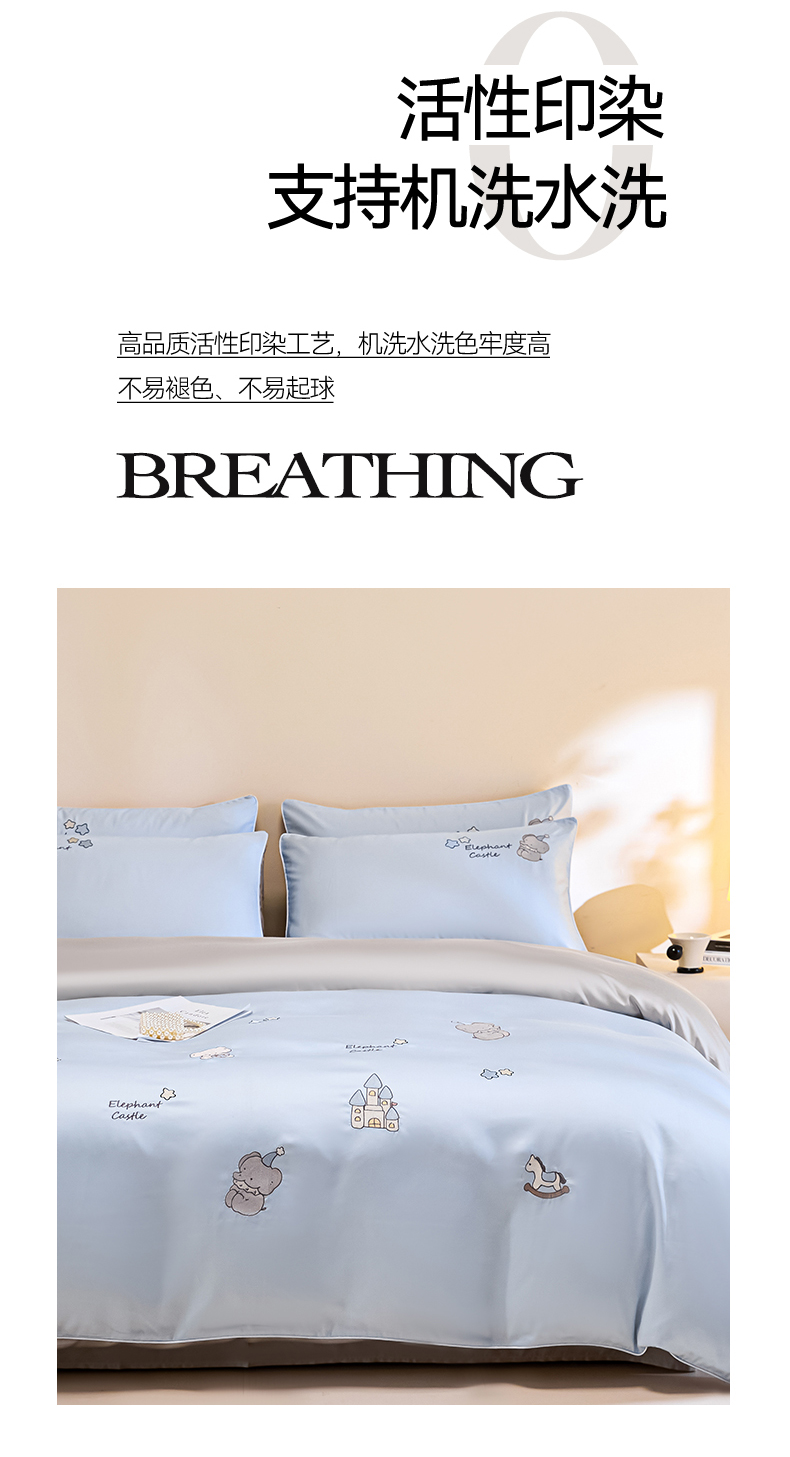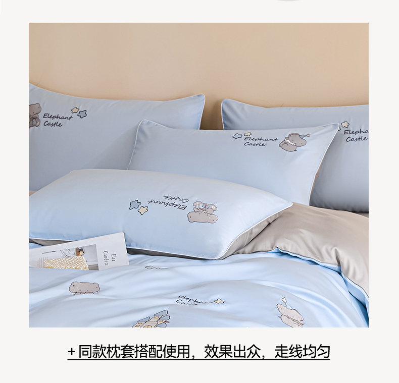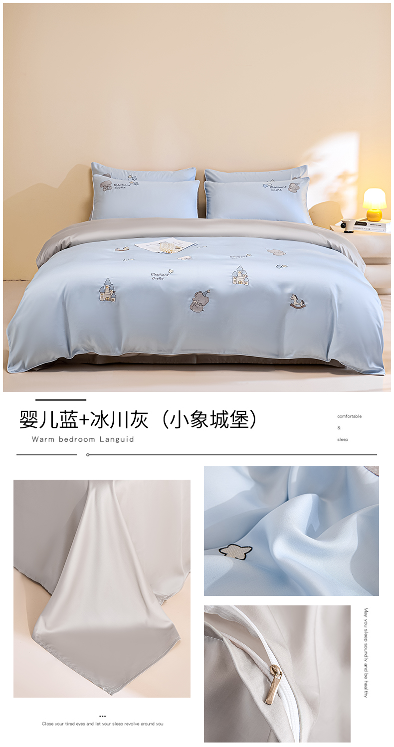 当前位置: 91家纺网 > 商品网购 > 床品套件 > 四件套 > 莱赛尔四件套 > DC 2026新款天丝刺绣麻绳平绣系列四件套 麻绳平绣-婴儿蓝+冰川灰(小象城堡)