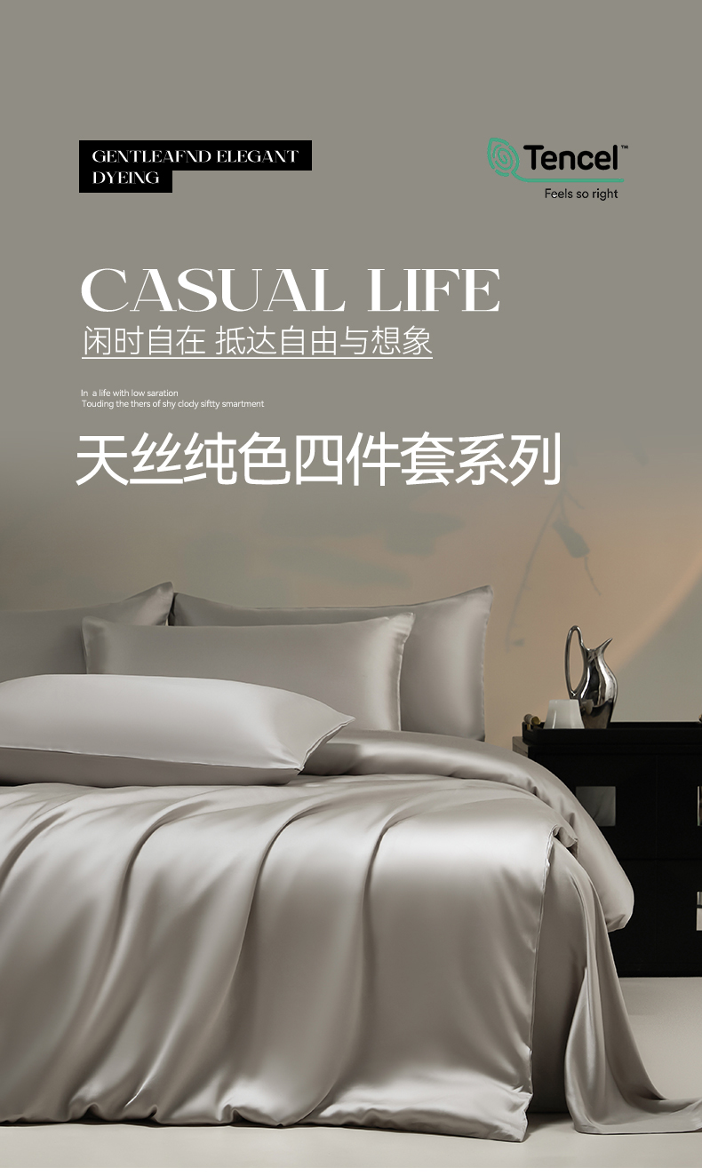 商品名称:DC 2026新款天丝纯色双拼四件套--多娜系列 椰子灰