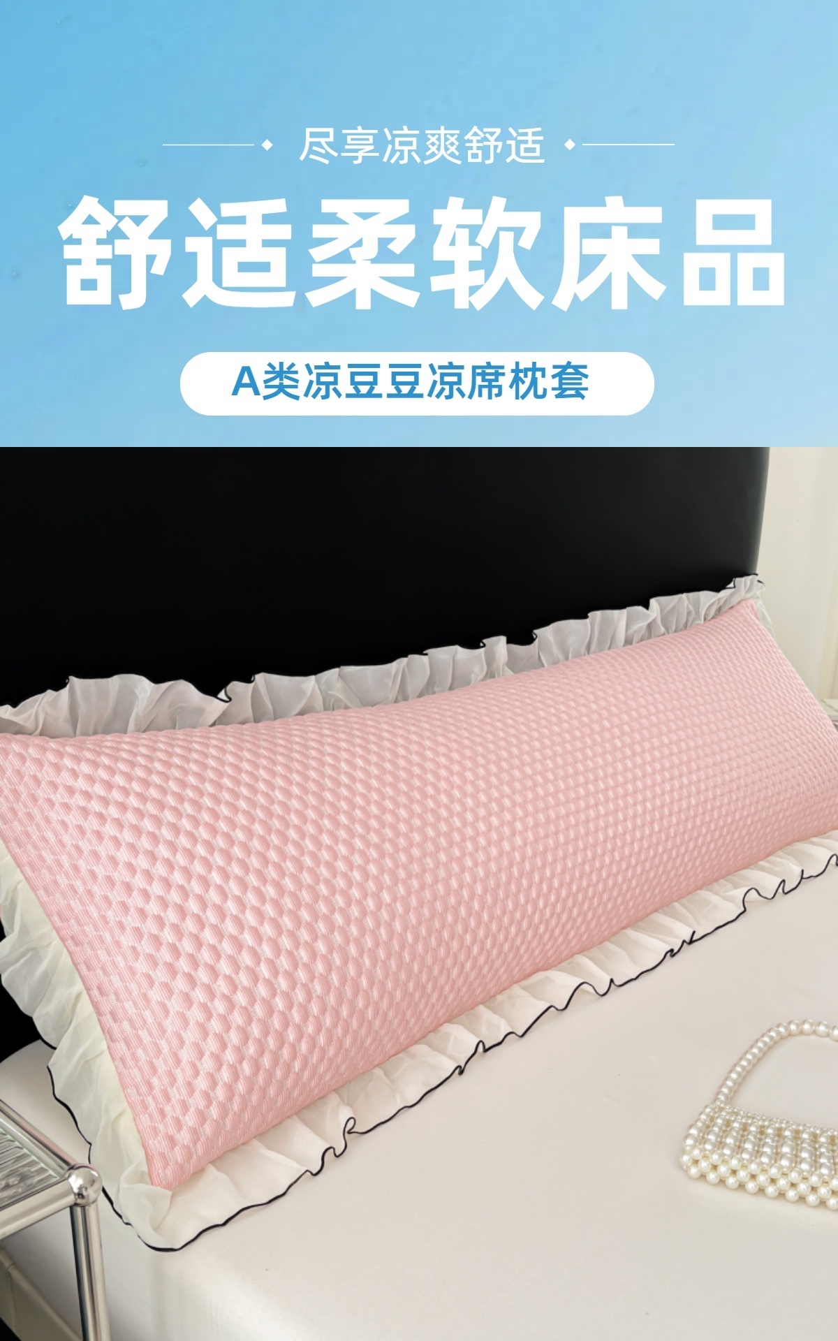 商品名称:圣比熊 2026新款A类凉感冰豆豆凉席花边冰丝枕套情侣双人1.8m枕头套加长枕芯套 凉豆豆-仙气粉