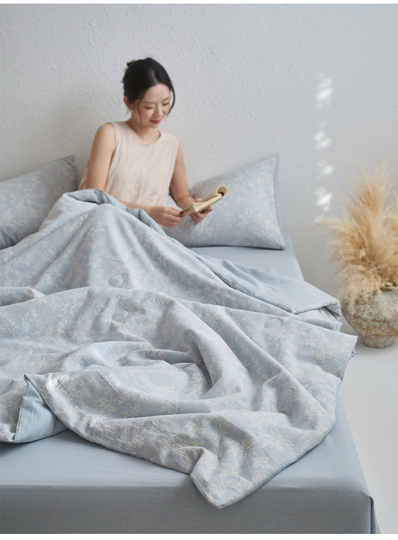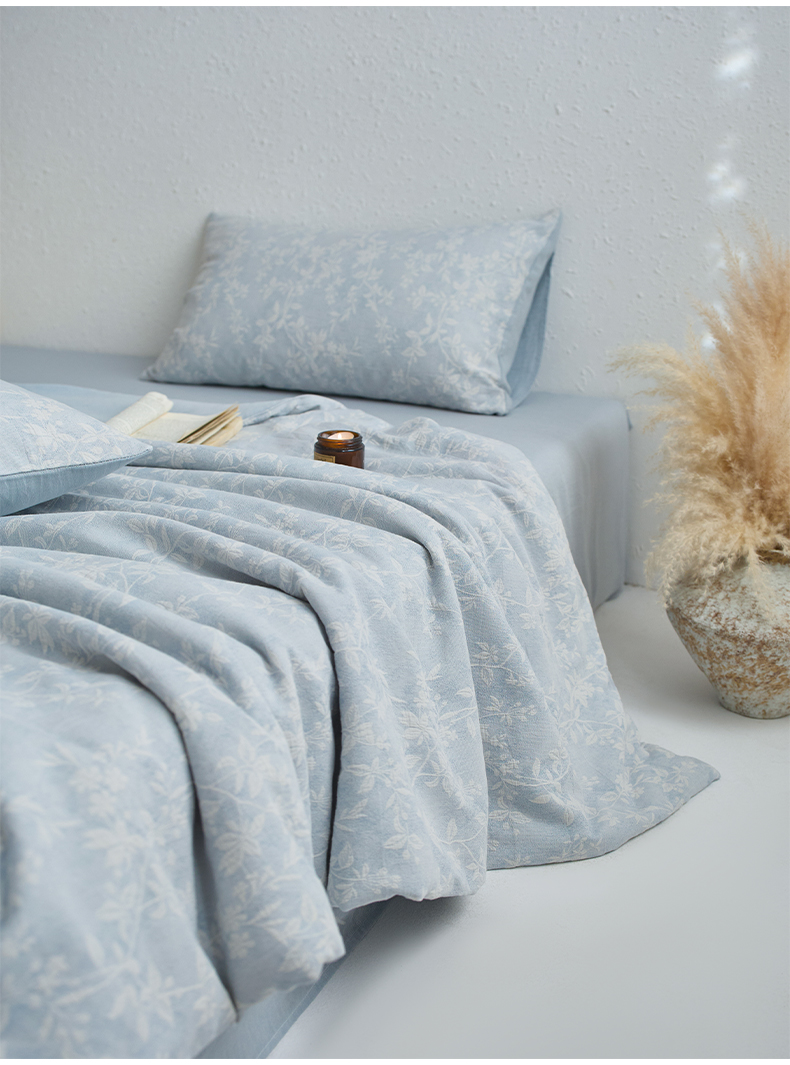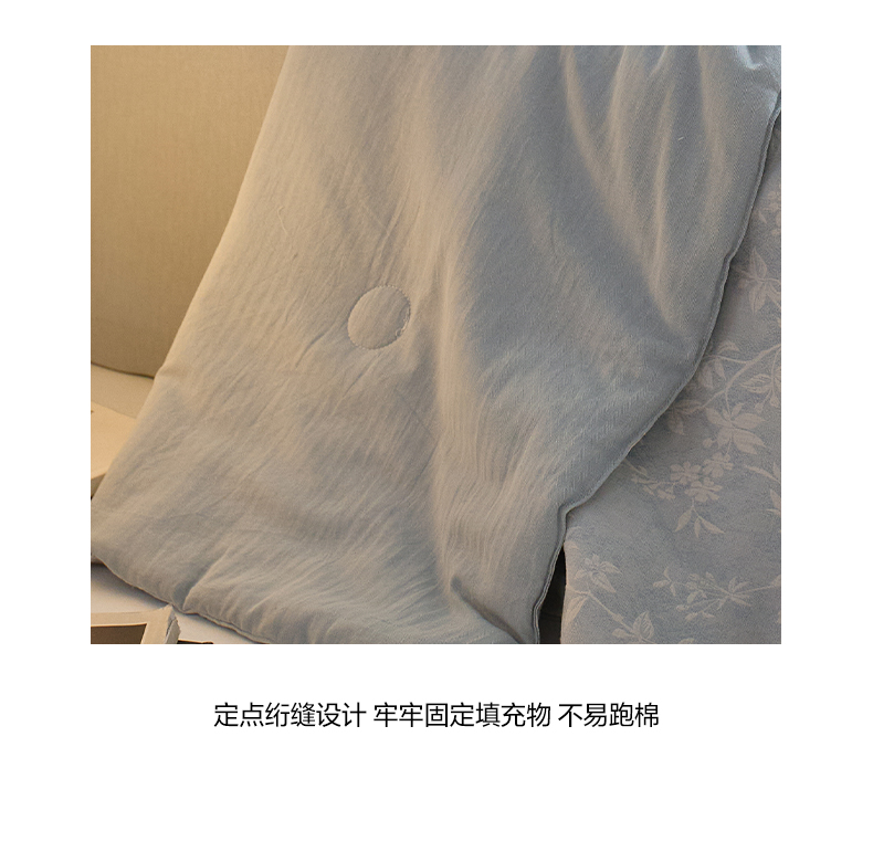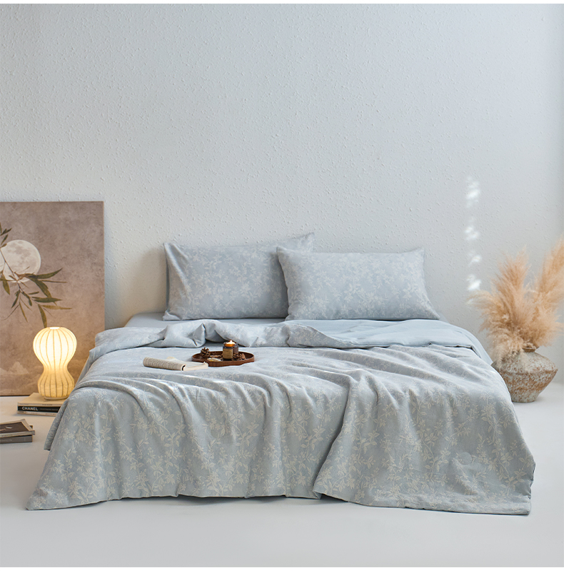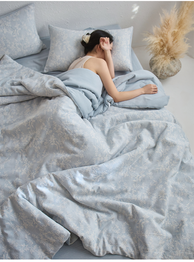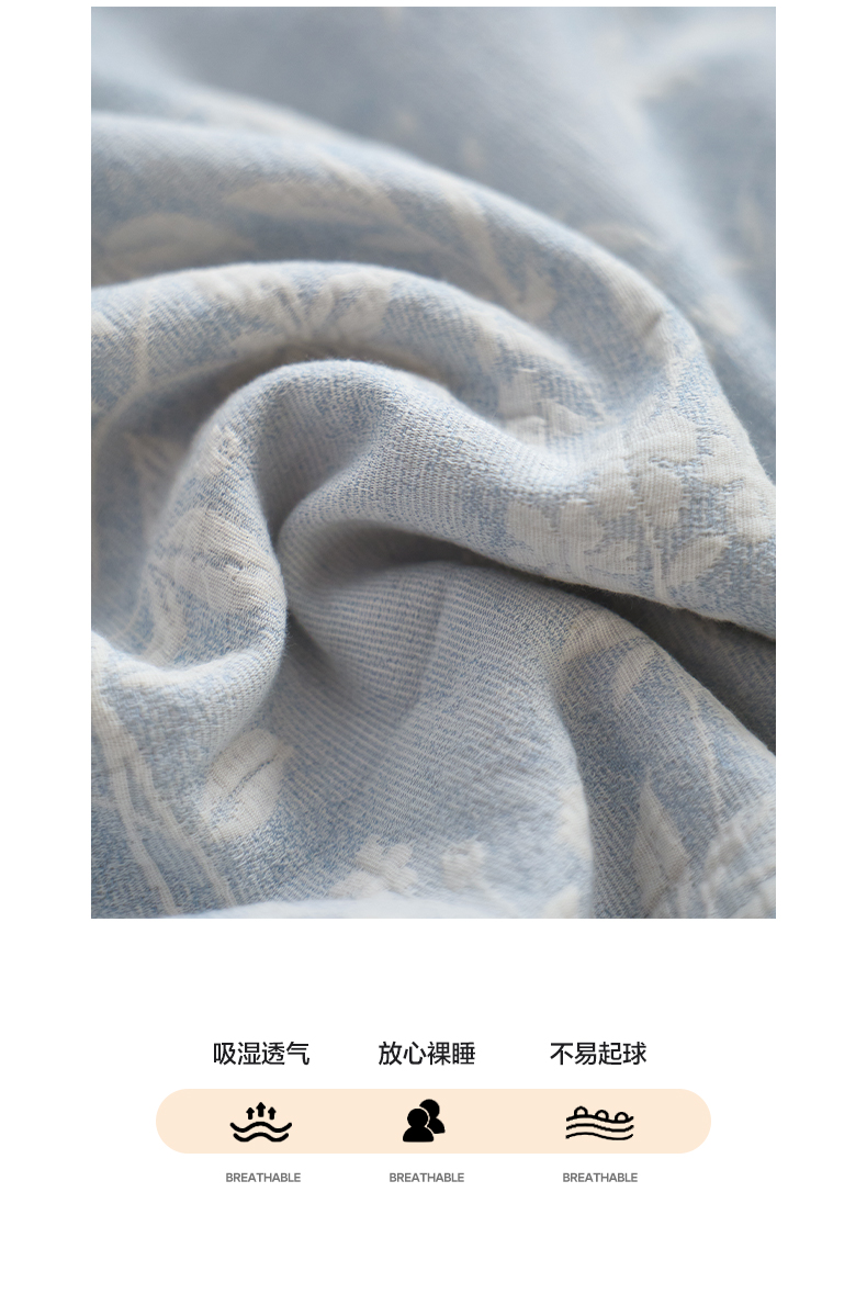 当前位置: 91家纺网 > 商品网购 > 被子 > 夏被 > 如一 2026新款60S全棉色织提花三层纱夏被四件套叶蔓系列 叶蔓蓝