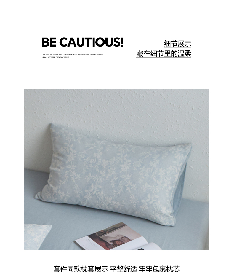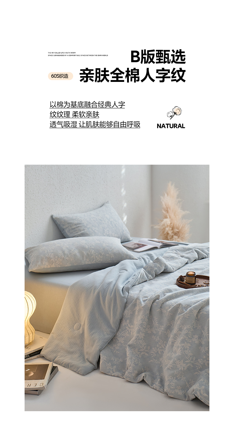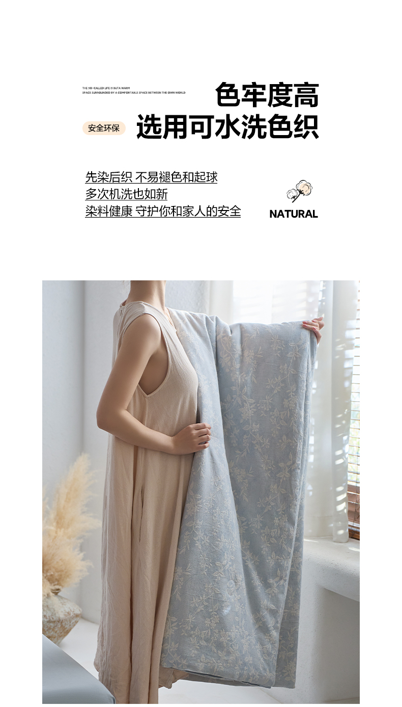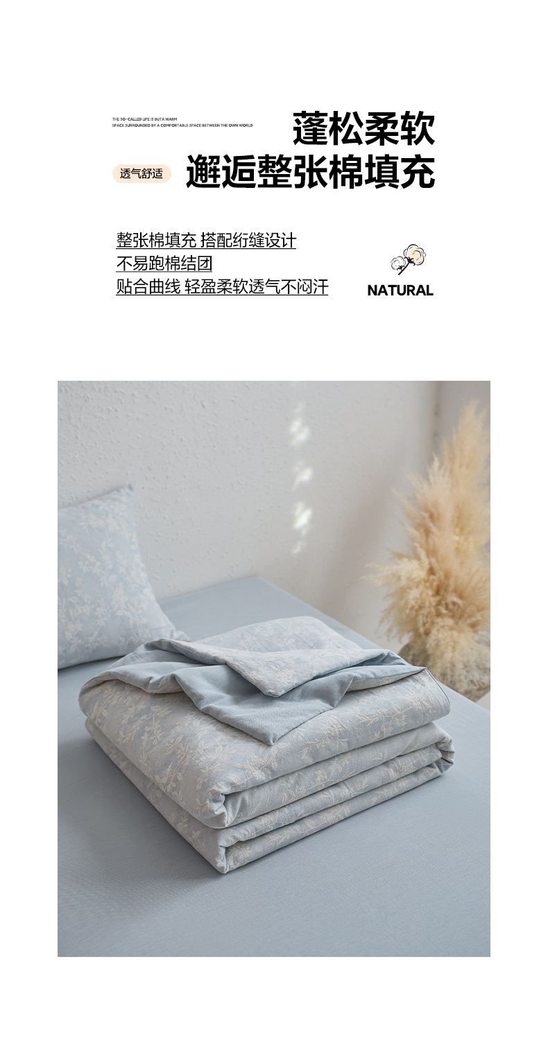 当前位置: 91家纺网 > 商品网购 > 被子 > 夏被 > 如一 2026新款60S全棉色织提花三层纱夏被四件套叶蔓系列 叶蔓蓝