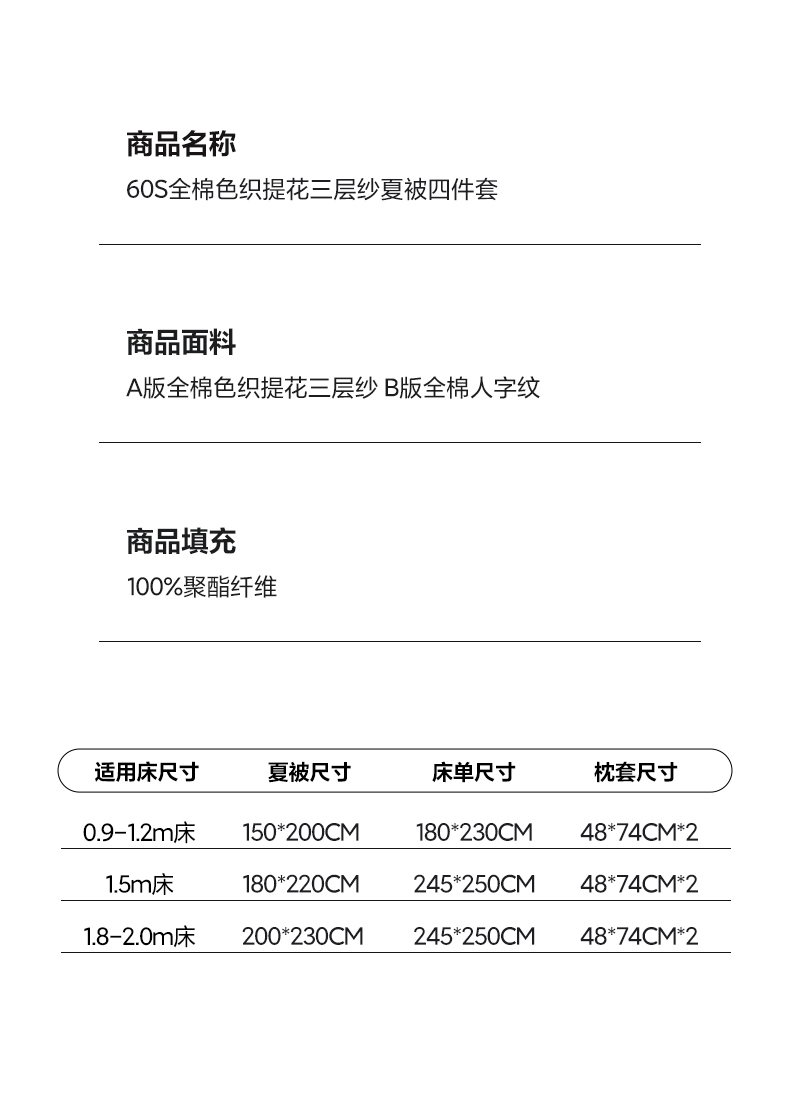 【夏被四件套】2.0*2.3米+床单245*250cm+枕套一对