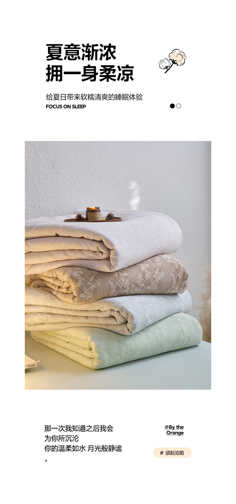 • 91家纺网 家纺一手货源 找家纺 (总)如一 2026新款A类色织提花全棉双层纱水洗棉夏被夏凉被空调被四件套,浮光粉,浮光灰,浮光咖,兰序蓝,兰序绿,兰序紫,序章粉,序章蓝,叶笙咖,叶笙绿