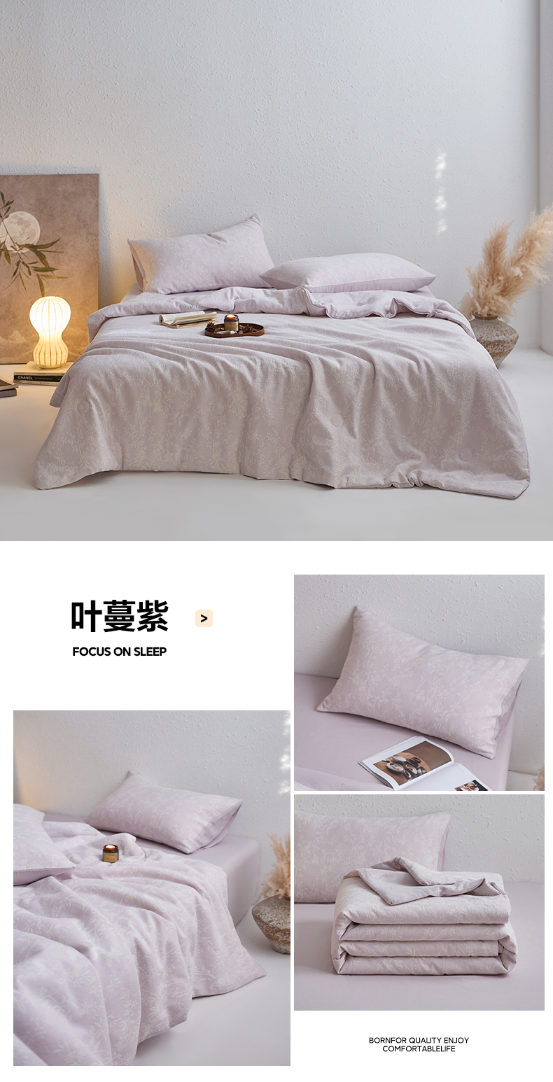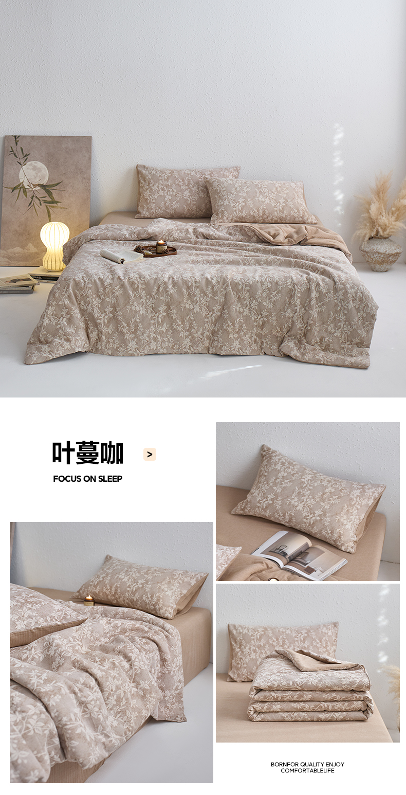 • 91家纺网 家纺一手货源 找家纺 (总)如一 2026新款60S全棉色织提花三层纱夏被四件套叶蔓系列,叶蔓咖,叶蔓蓝,叶蔓绿,叶蔓紫,组合
