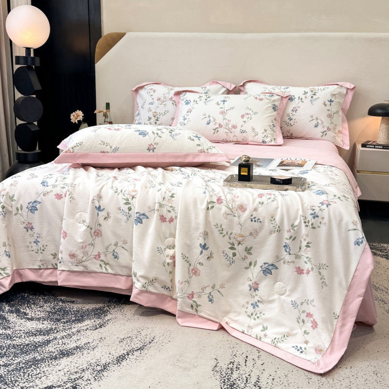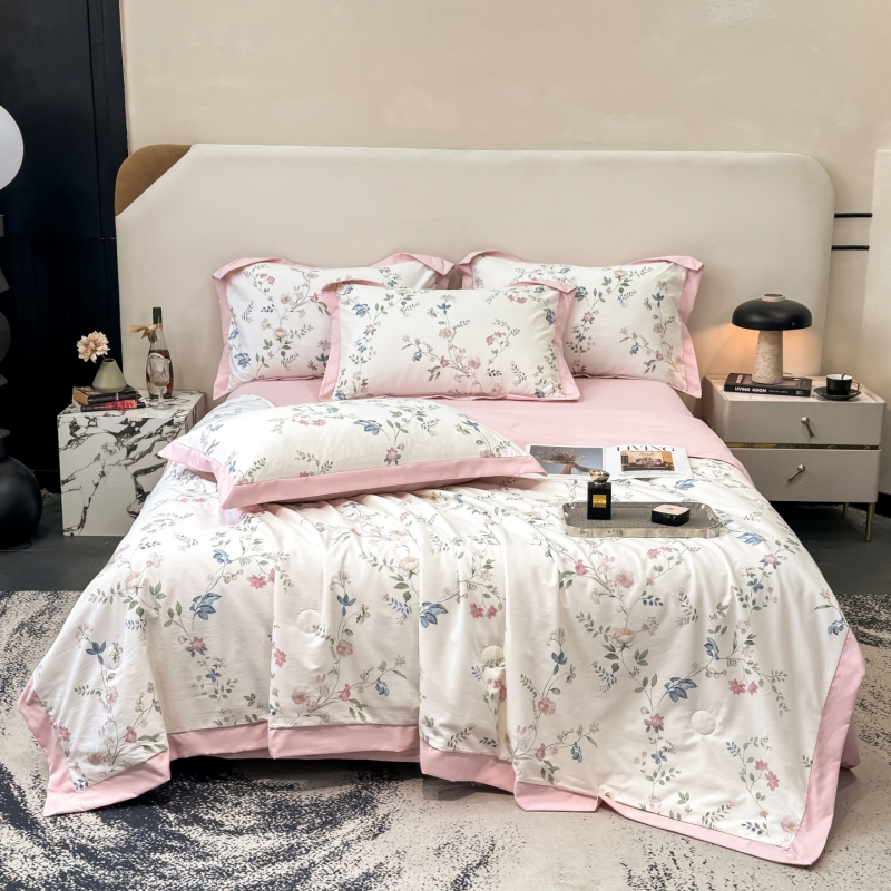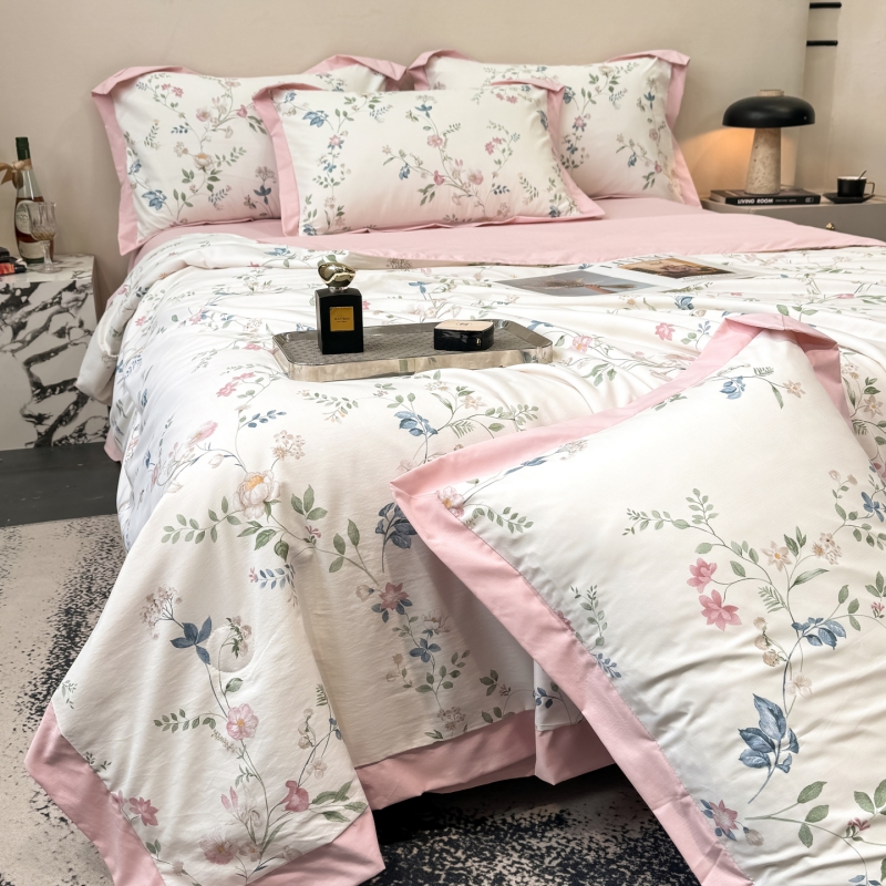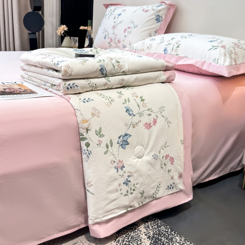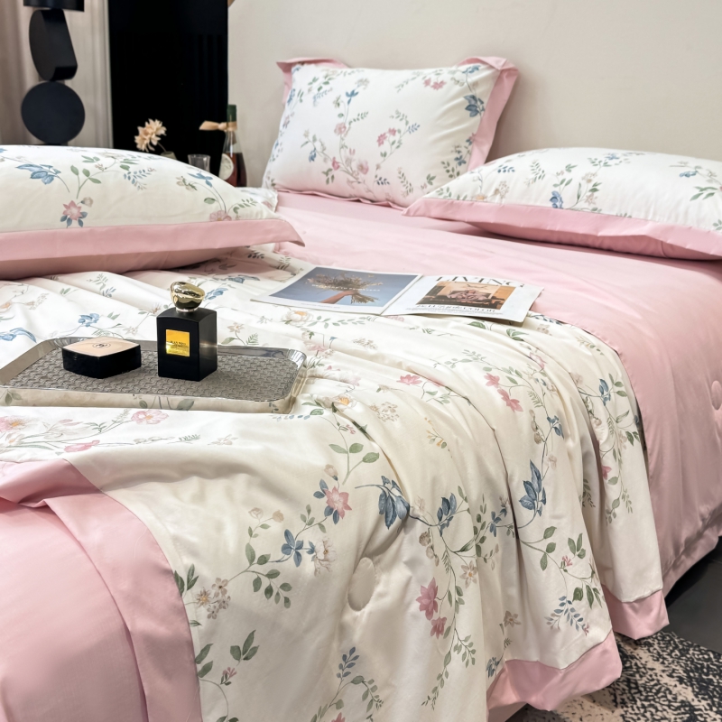 新款凉感天丝棉夏被夏凉被空调被夏被四件套系列 未央粉