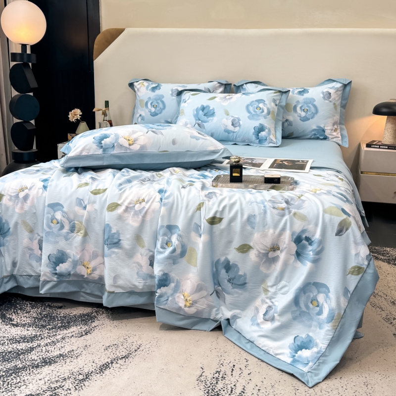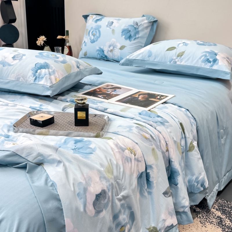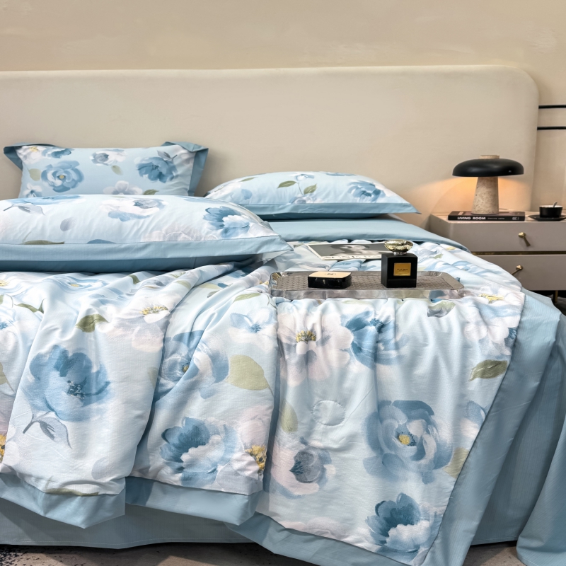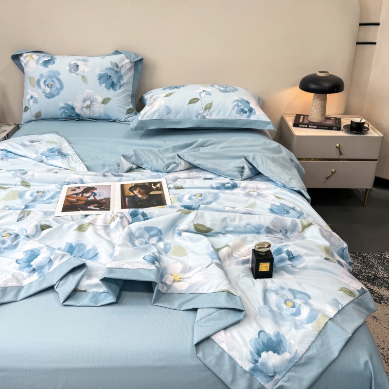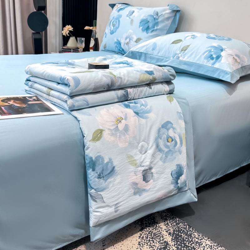 新款凉感天丝棉夏被夏凉被空调被夏被四件套系列 云兮蓝