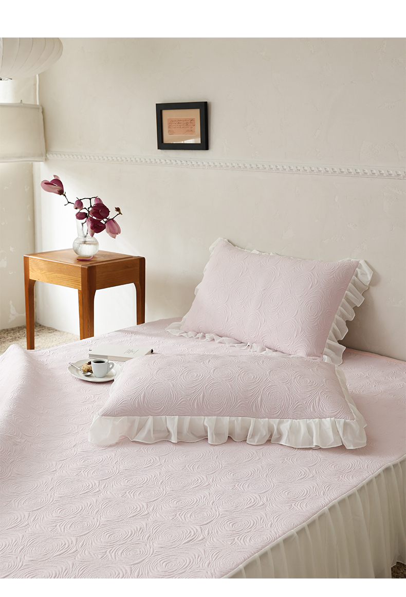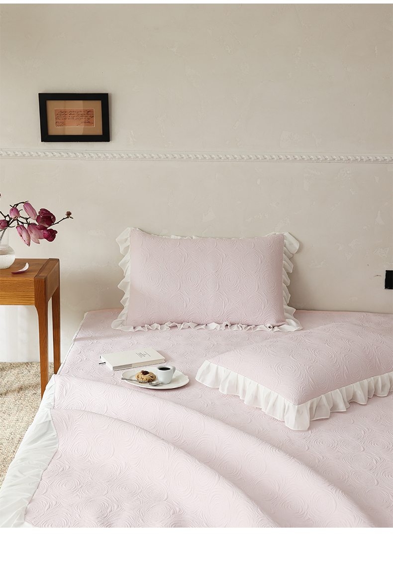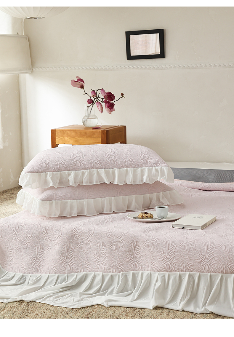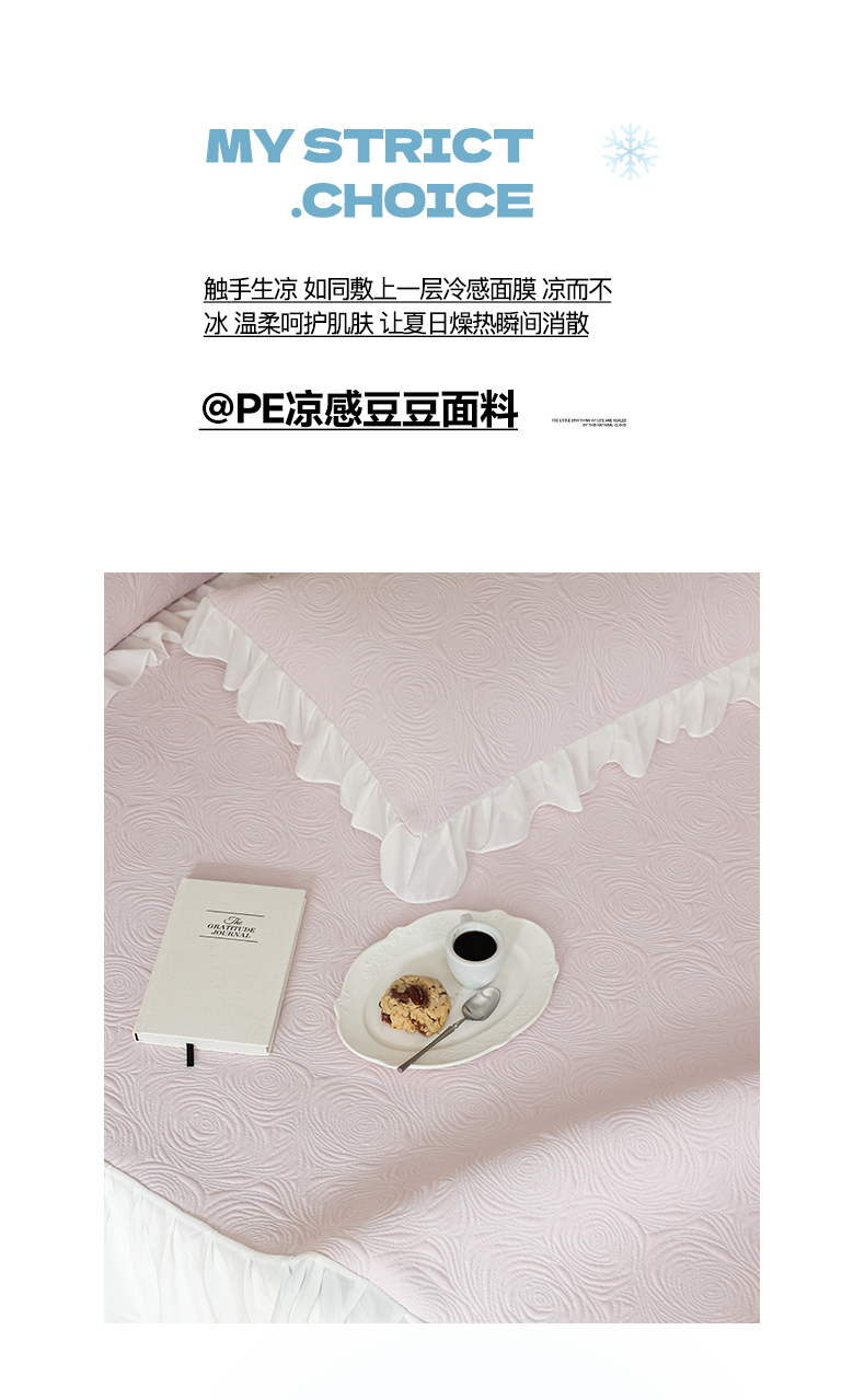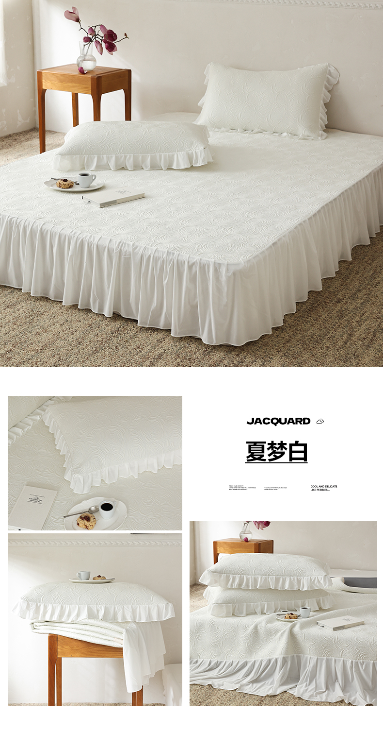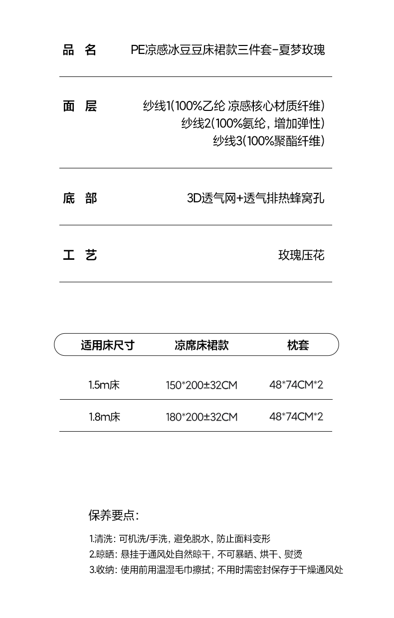 商品名称:三味舒屋 2026新款PE凉感冰豆豆床裙款三件套-夏梦玫瑰 夏梦蓝