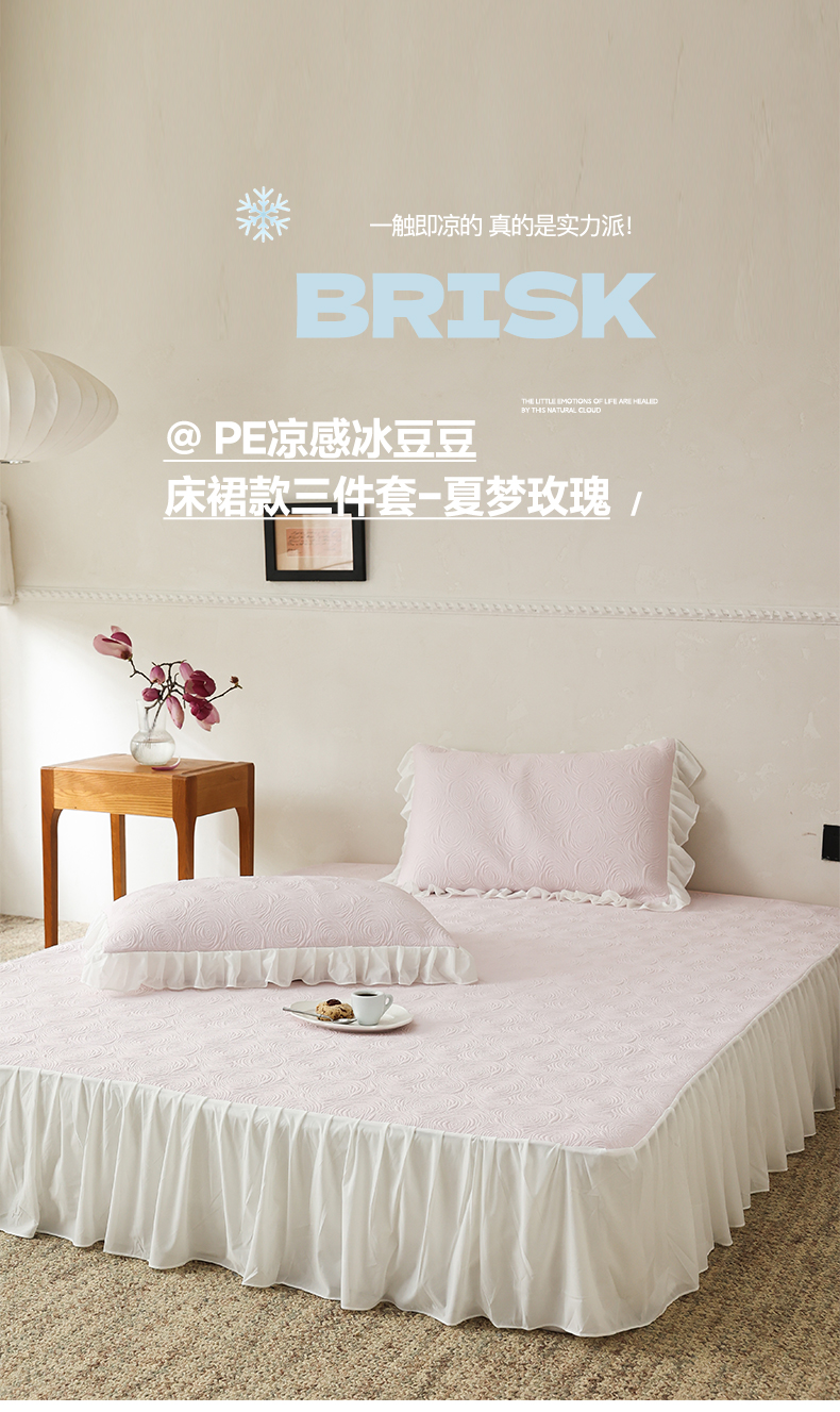 三味舒屋 2026新款PE凉感冰豆豆床裙款三件套-夏梦玫瑰 夏梦蓝