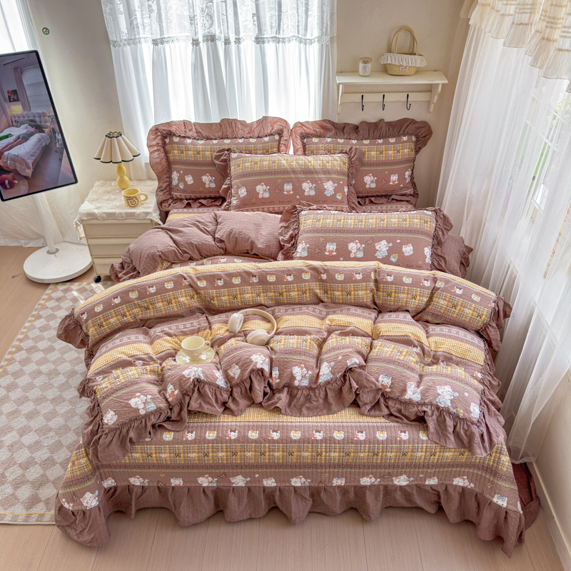 (总)仟网汇 2026新款密拷花边款法式泡芙纱夏被四件套夏被床盖四件套,波西米亚,春日花花,好柿发生,红红星人,灰调花园,焦糖小熊,马到成功,梦幻星人,奶糖猫咪,奶油啵啵,小云朵,紫罗兰