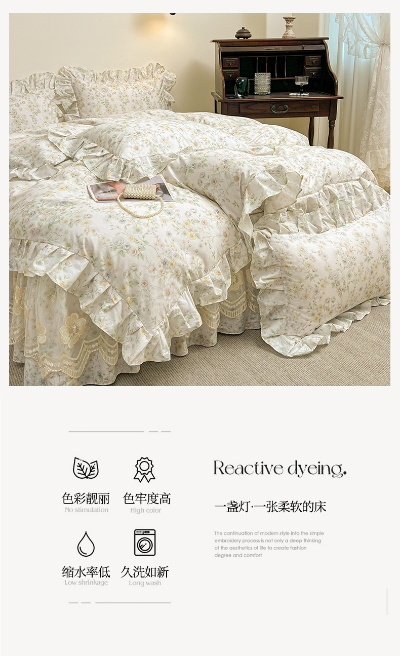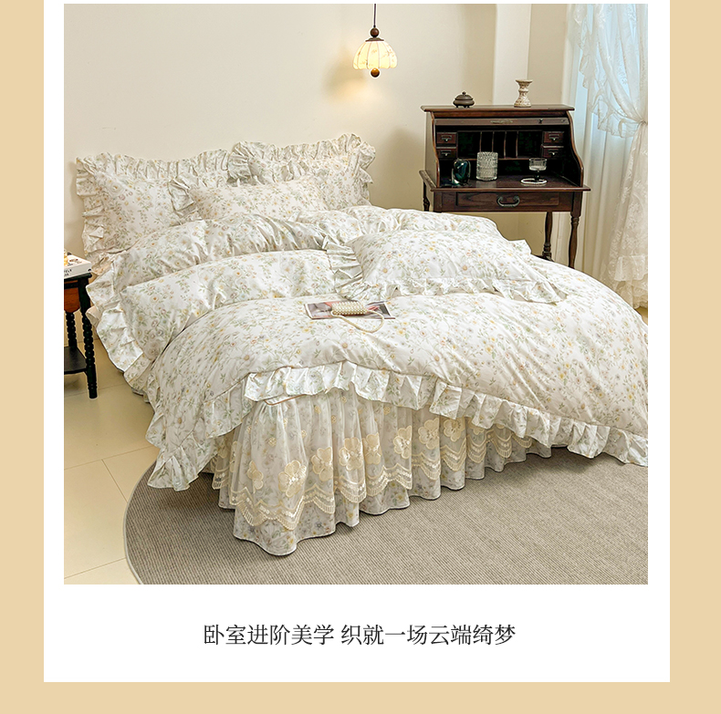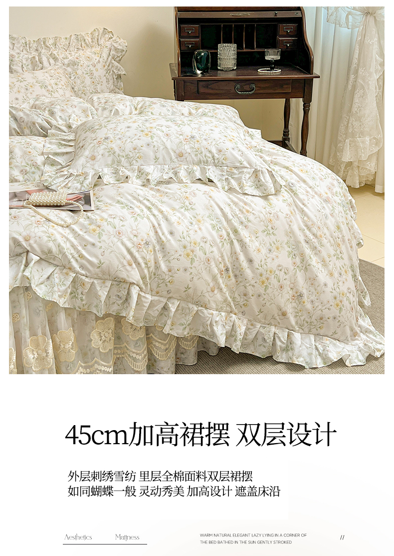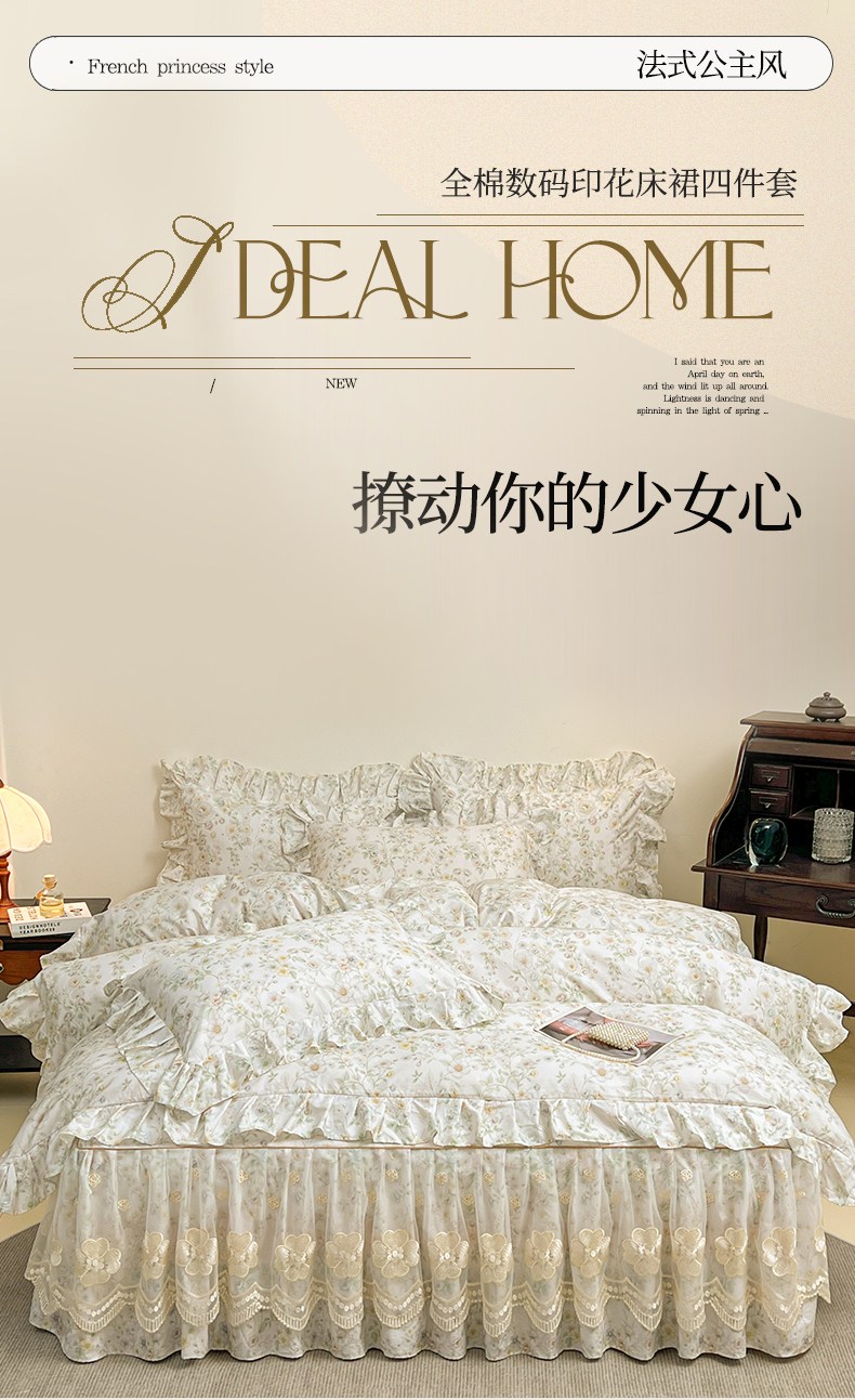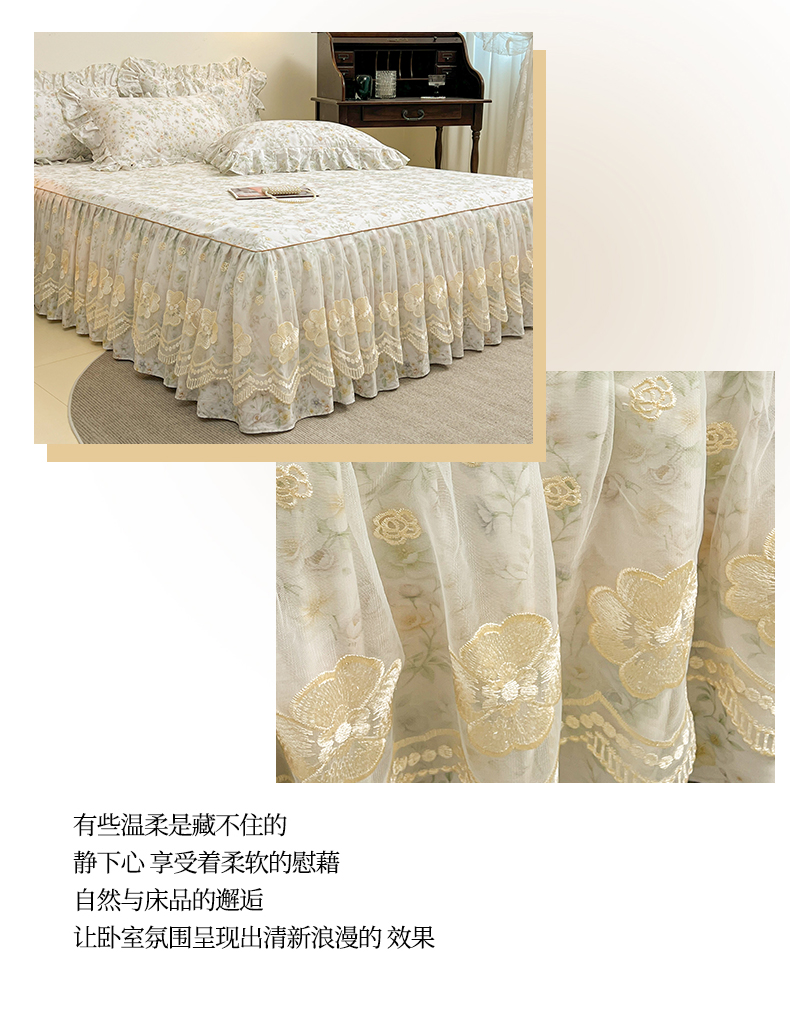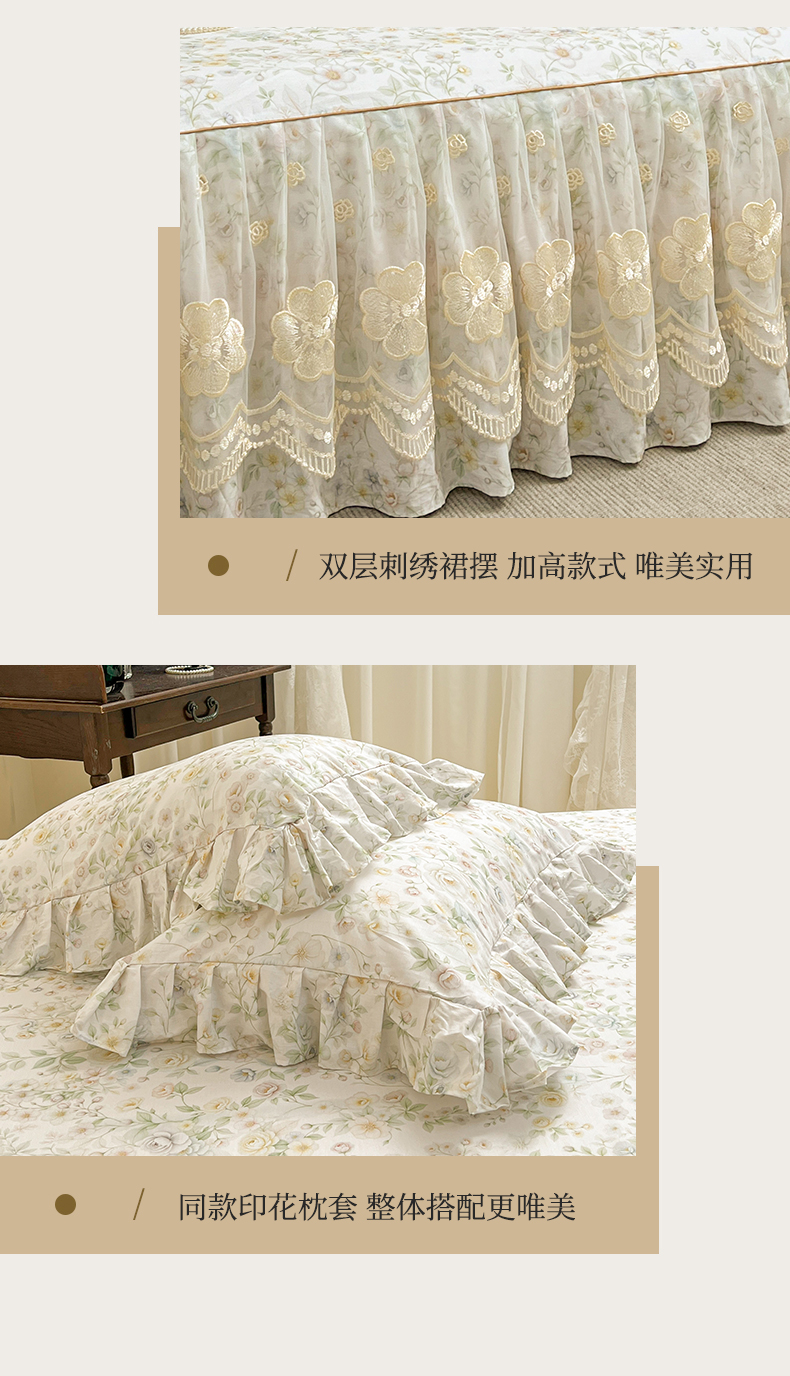 当前位置: 91家纺网 > 商品网购 > 床品套件 > 四件套 > 全棉普通四件套 > 宜凡家纺 2026新款全棉数码印花单层床裙四件套③号系列 芳若