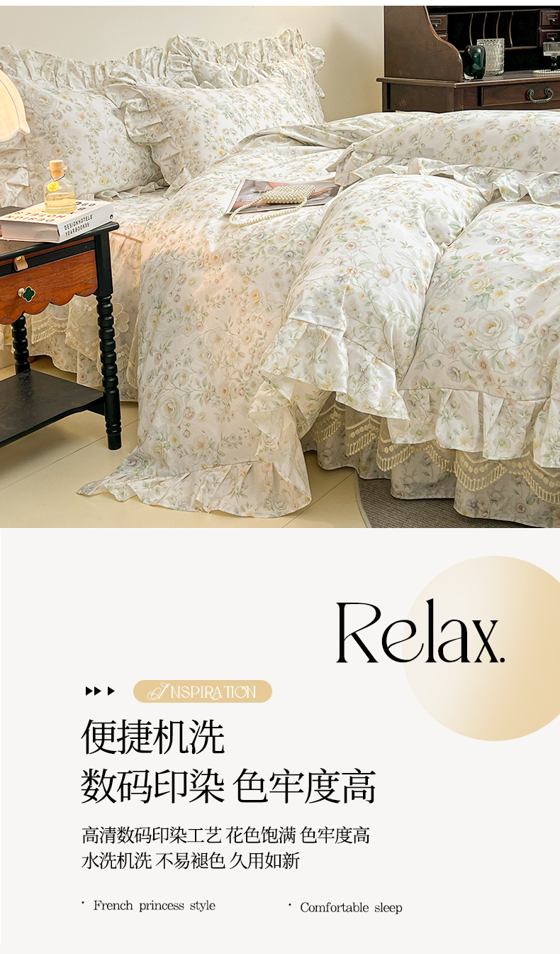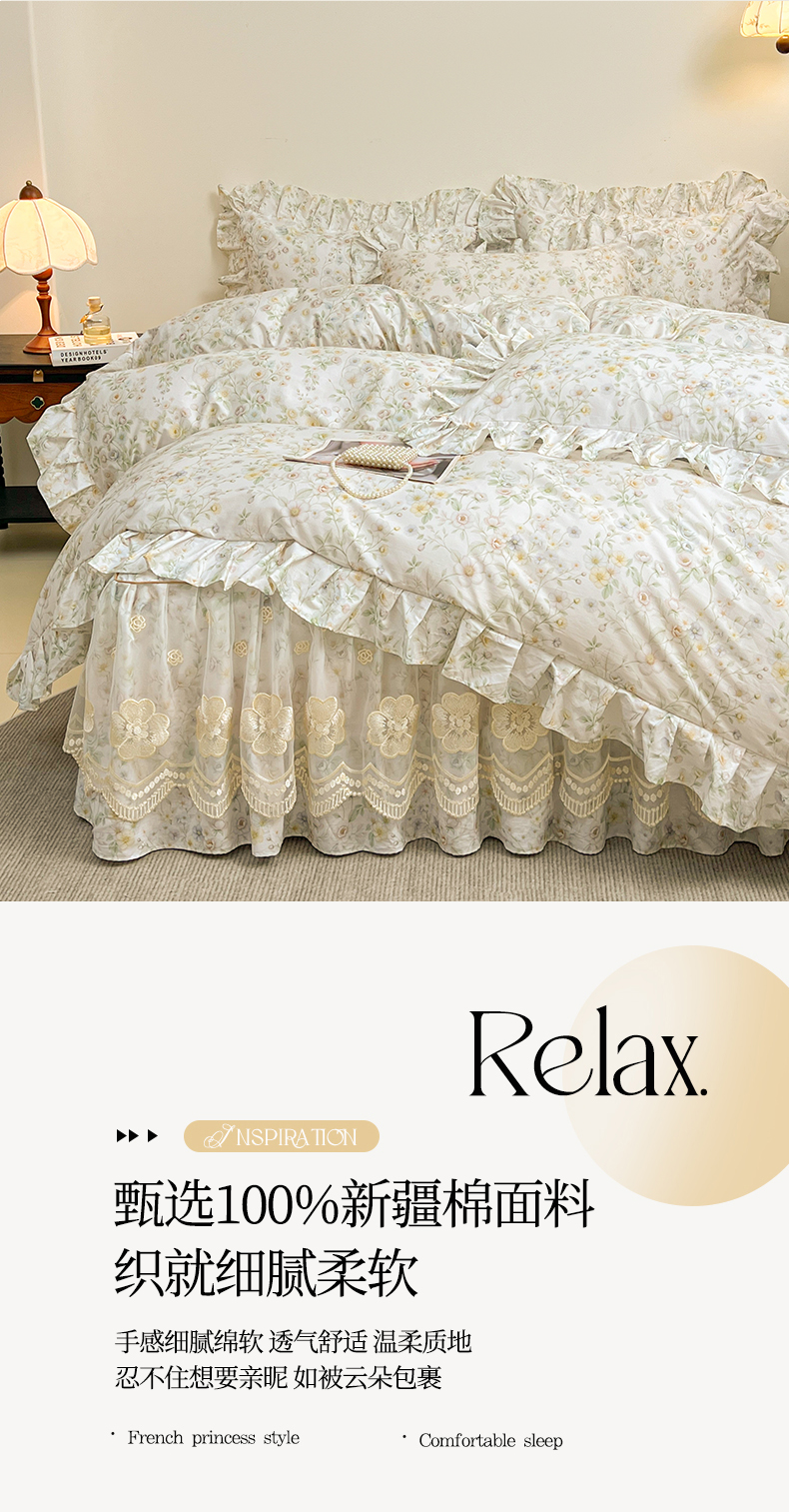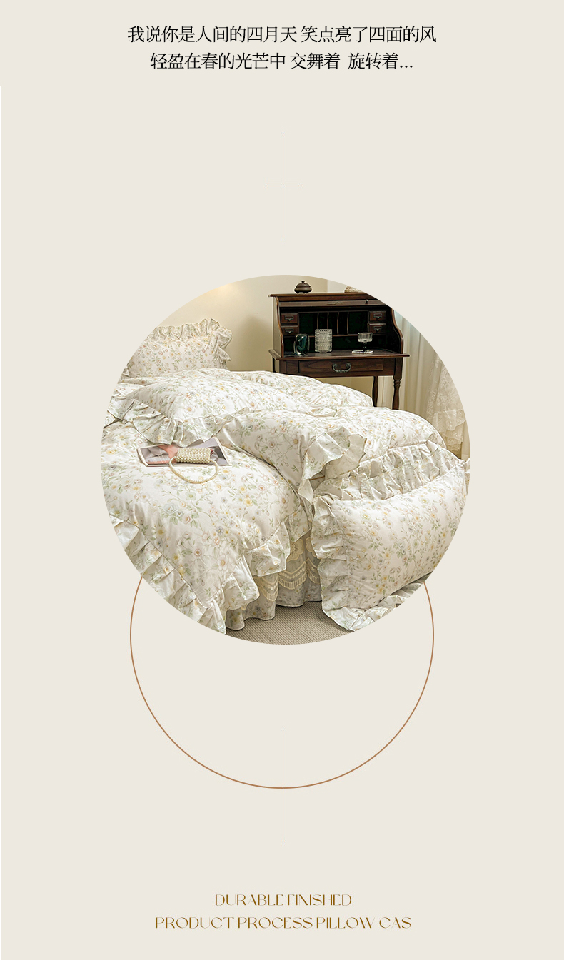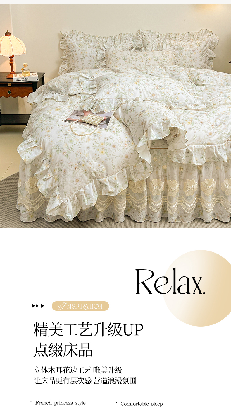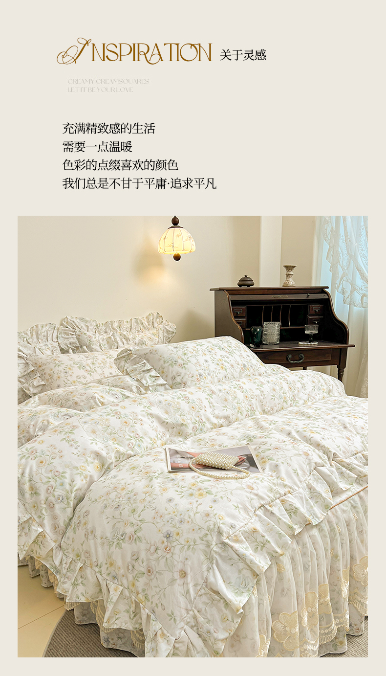 当前位置: 91家纺网 > 商品网购 > 床品套件 > 四件套 > 全棉普通四件套 > 宜凡家纺 2026新款全棉数码印花单层床裙四件套③号系列 芳若