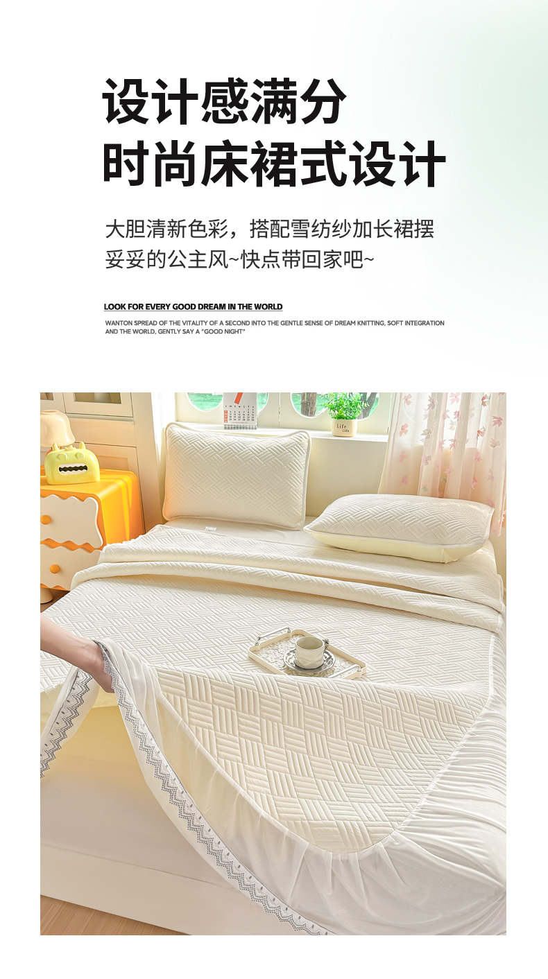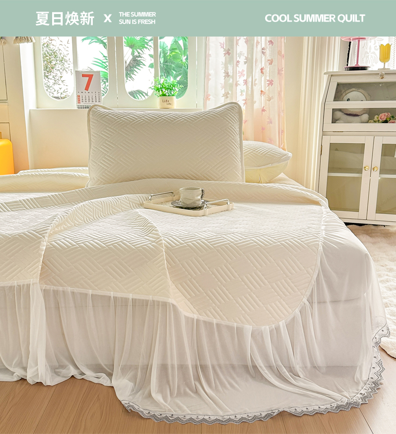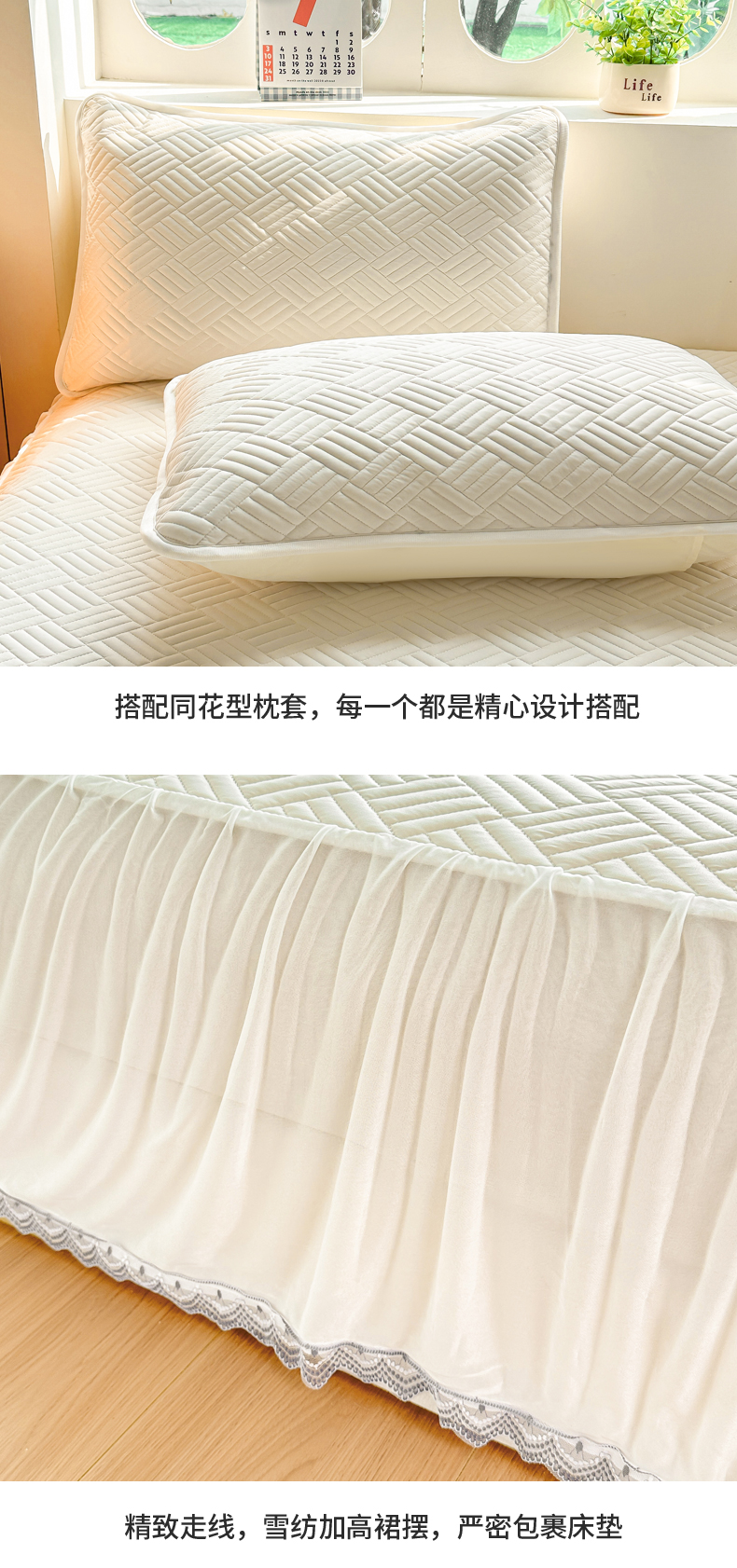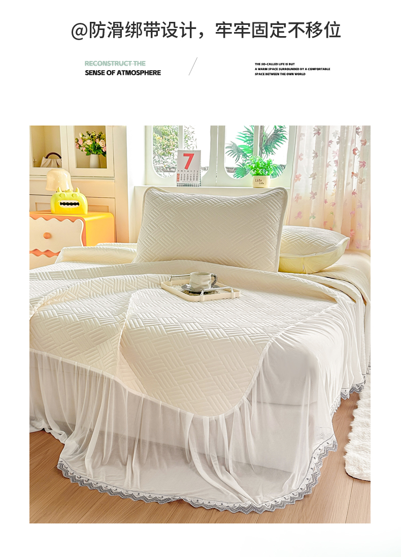 • 91家纺网 家纺一手货源 找家纺 丹本家纺 2026新款凉感夏被空调被凉席空调席冰丝席纯色床裙乳胶席三件套四件套菱形格 菱形格床裙款-米白