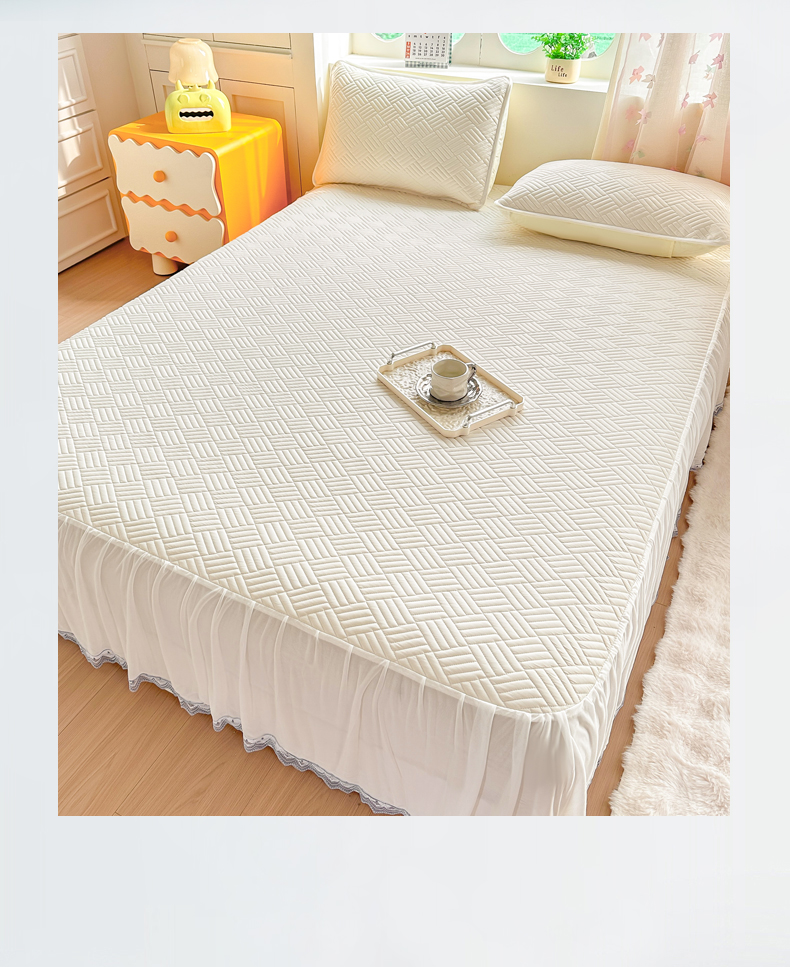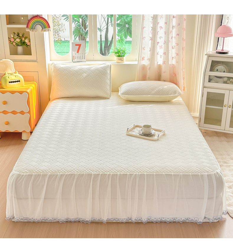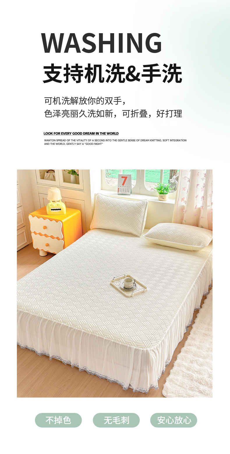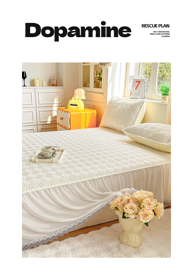 • 91家纺网 家纺一手货源 找家纺 丹本家纺 2026新款凉感夏被空调被凉席空调席冰丝席纯色床裙乳胶席三件套四件套菱形格 菱形格床裙款-米白