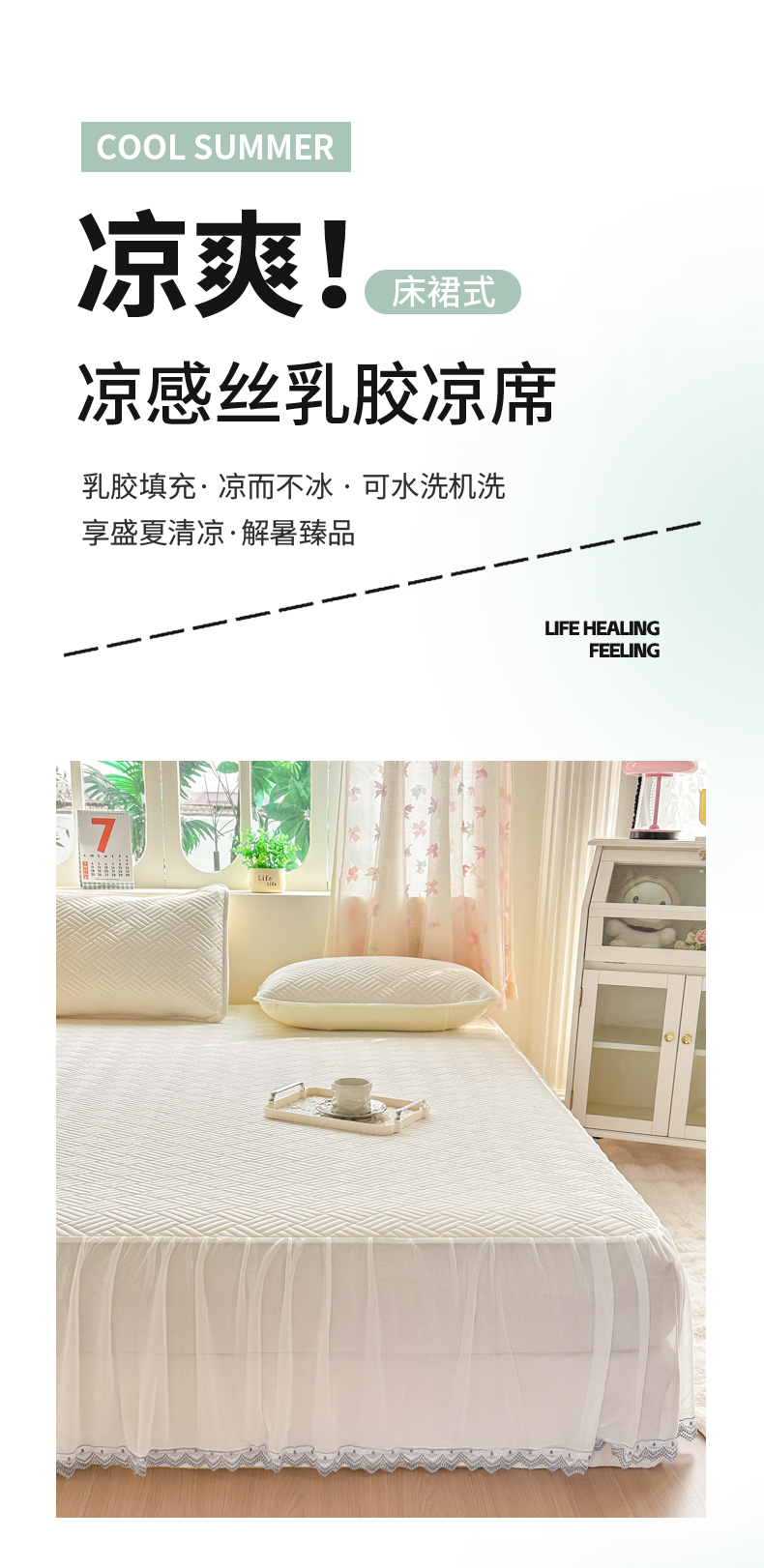 丹本家纺 2026新款凉感夏被空调被凉席空调席冰丝席纯色床裙乳胶席三件套四件套菱形格 菱形格床裙款-米白