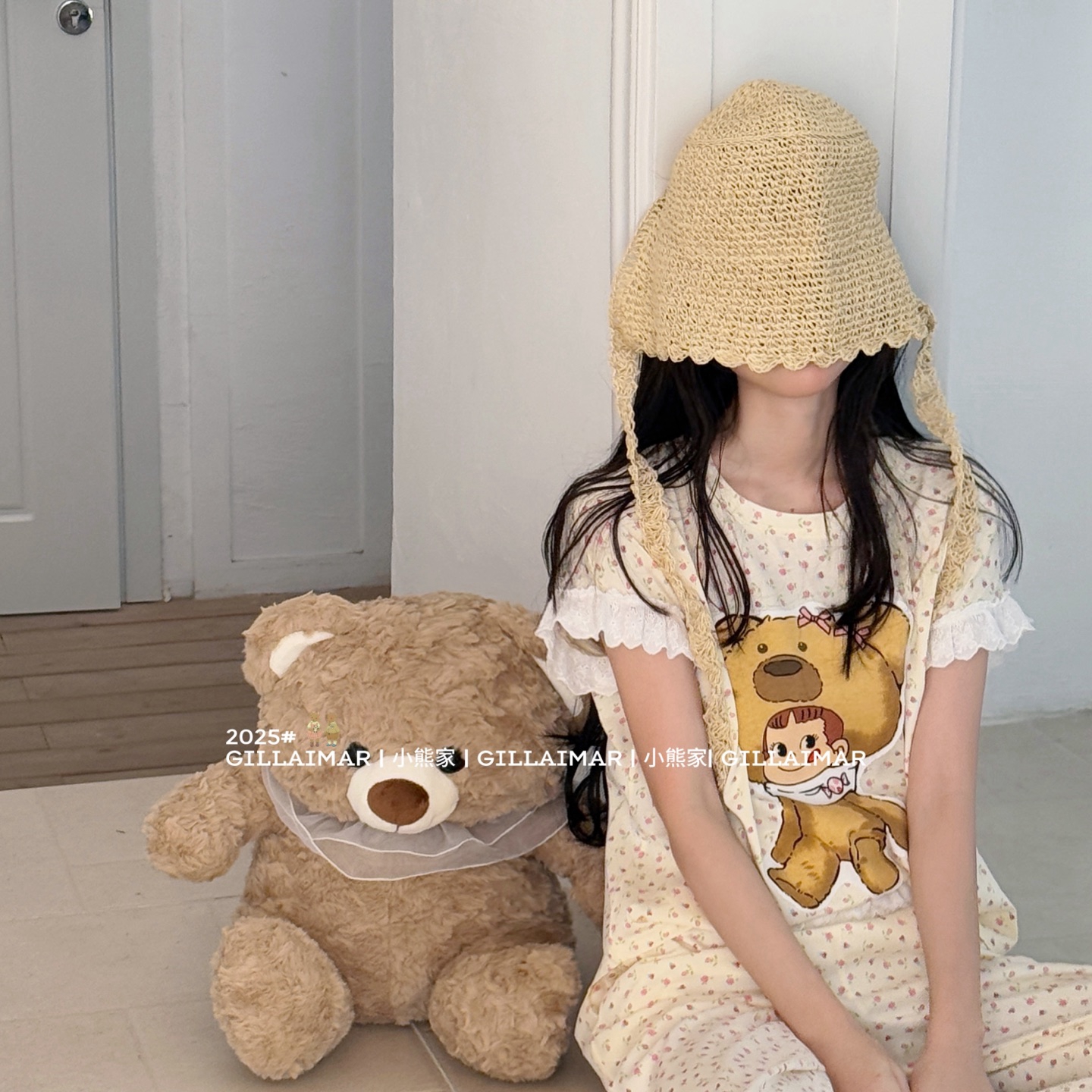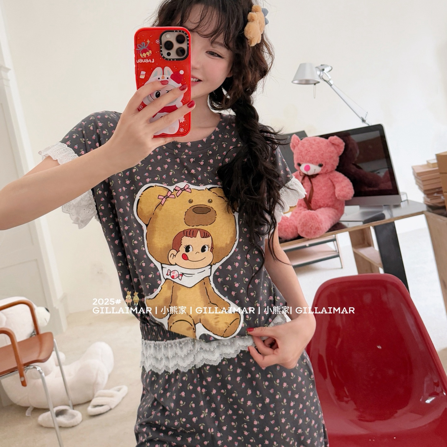 商品名称:妍景家居生活馆 2026新款丝光棉小熊家-花花不二熊家居服 花花不二熊-深灰