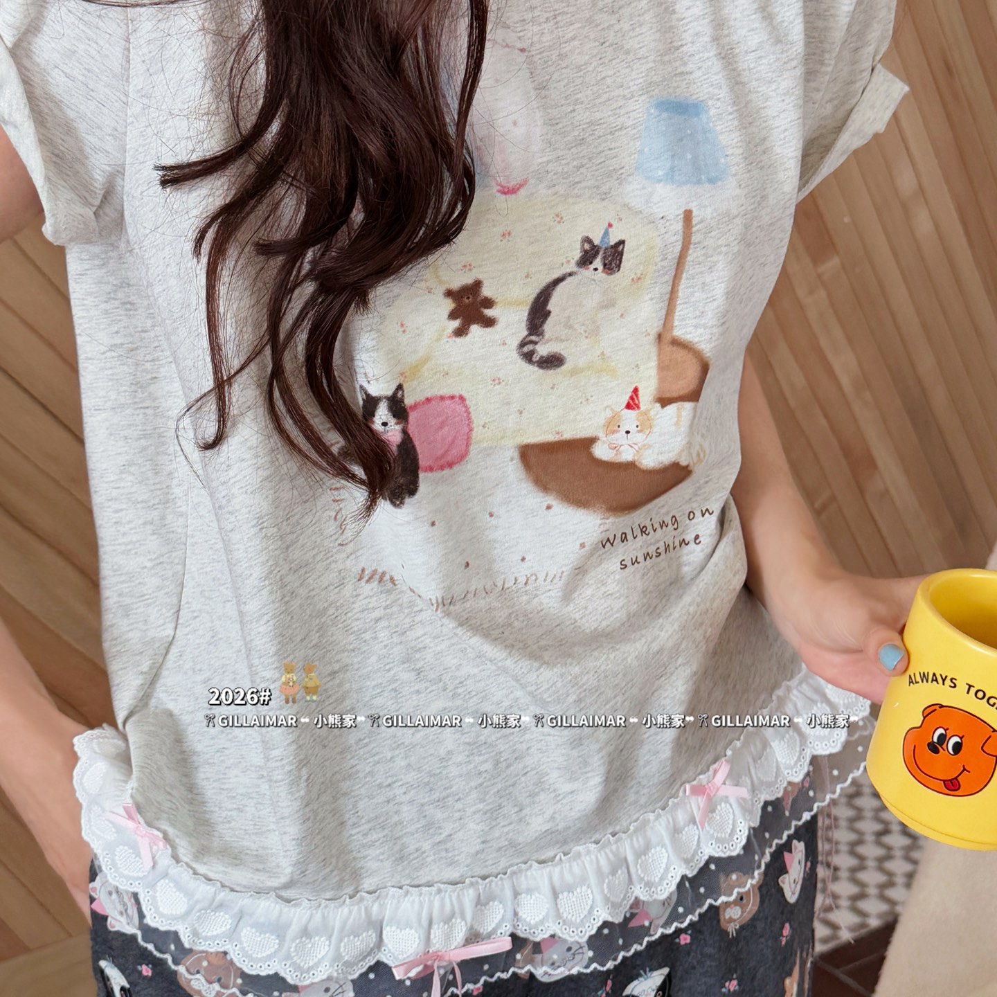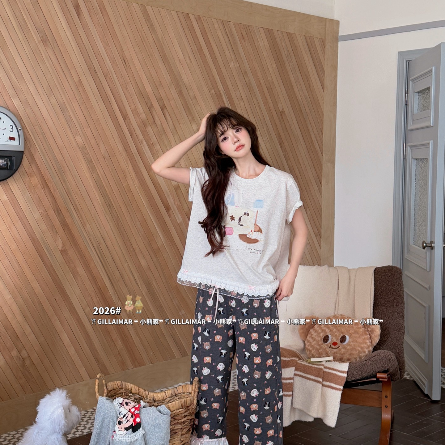 当前位置: 91家纺网 > 商品网购 > 居家日用 > 睡衣/家居服套装 > (总)妍景家居生活馆 2026新款莱赛尔冰丝棉小熊家-无忧小猫家居服