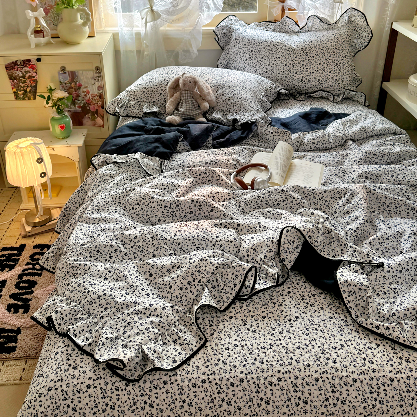 (总)阿曼达 2025新款韩系法式慵懒氛围感印花泡芙花边四件套(专版花型),樱花泡芙-黑,樱花泡芙-红,樱花泡芙-蓝,樱花泡芙-梨漫,樱花泡芙-宅妹粉