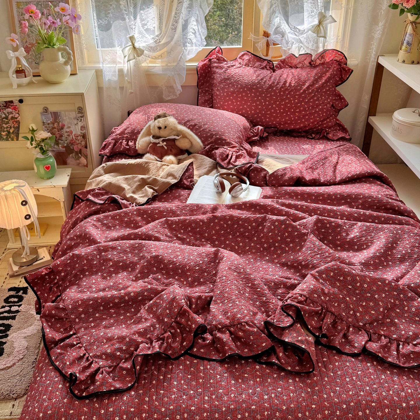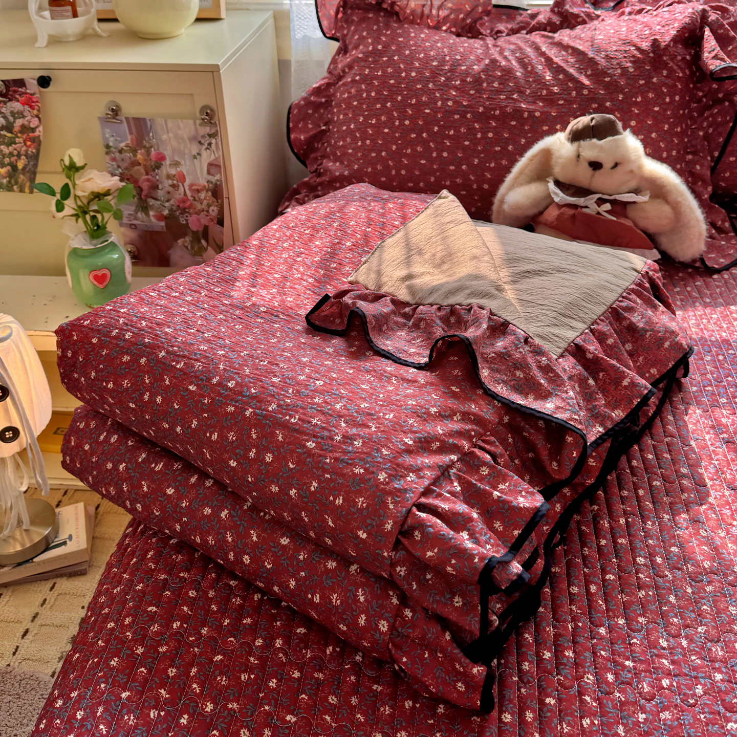 商品名称:阿曼达 2026新款印花小碎花花边夏被床盖四件套单夏被单床盖 木棉笺
