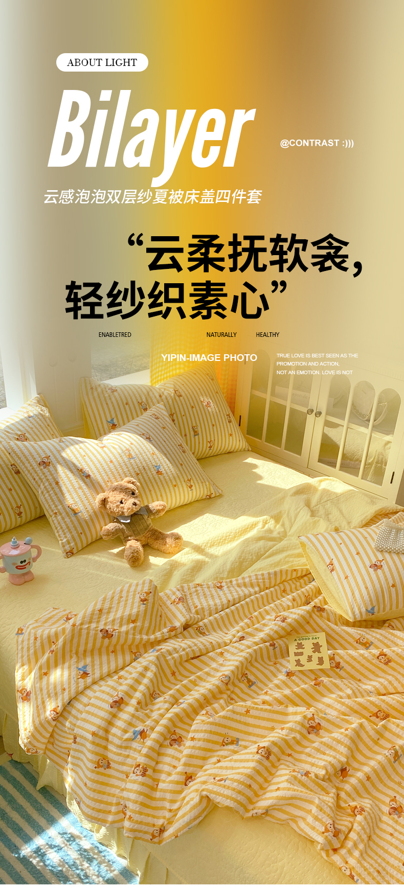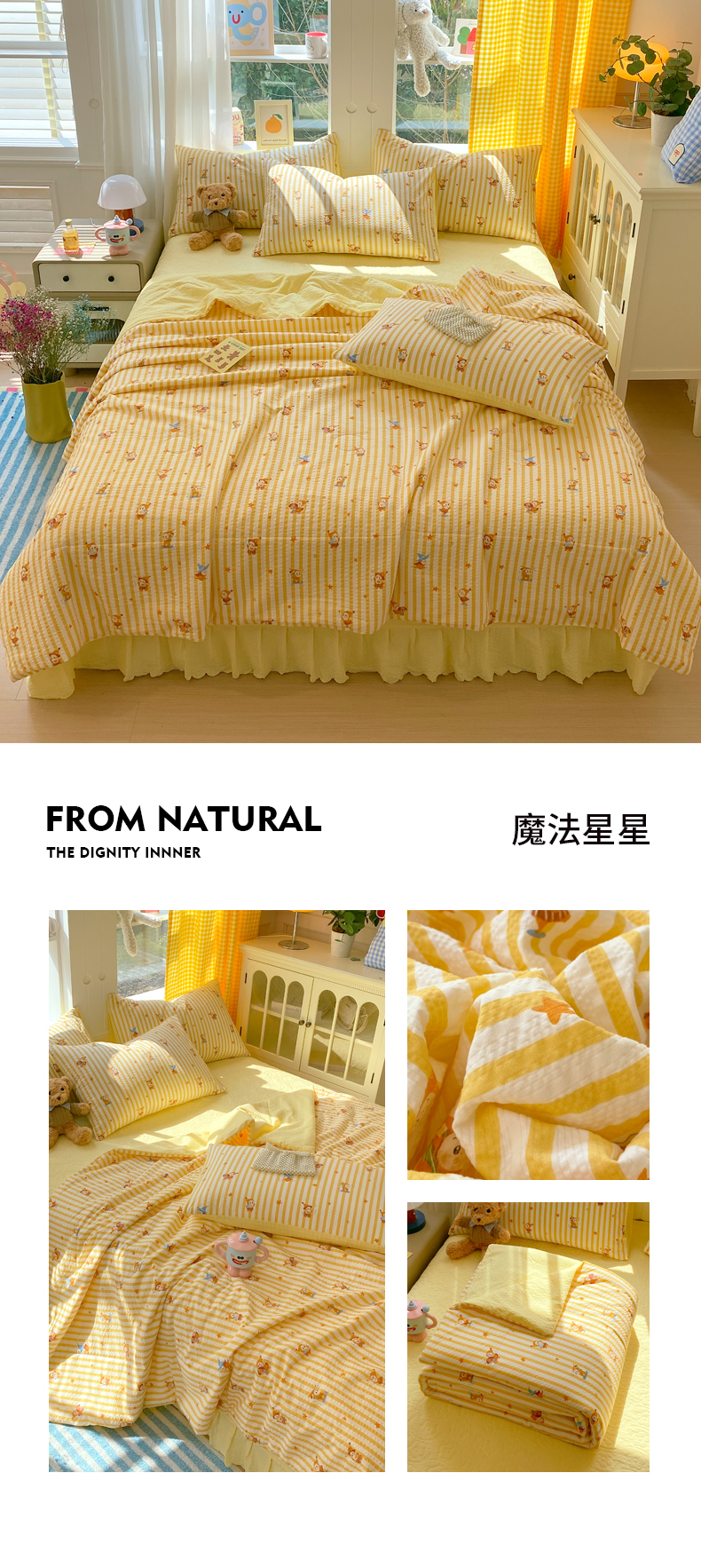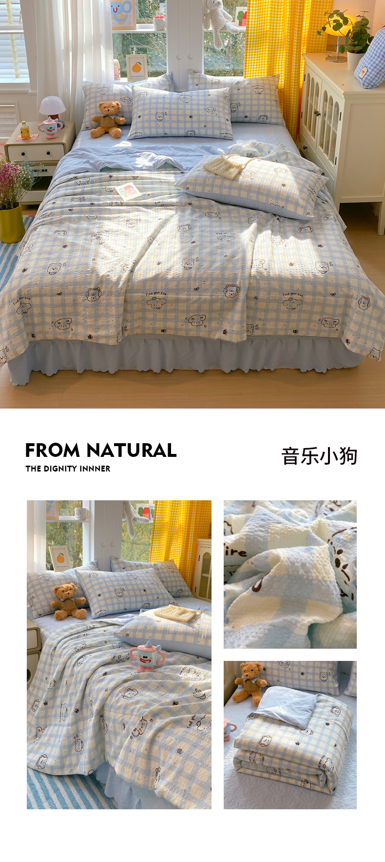 (总)莱米家纺 2026新款云感泡泡纱双层纱床盖四件套,海底星星,费尔岛红,费尔岛咖,费尔岛紫,卡其波点,绿花枝叶,绿樱桃,兔兔之家,星星人,紫色爱心,棕蝴蝶结