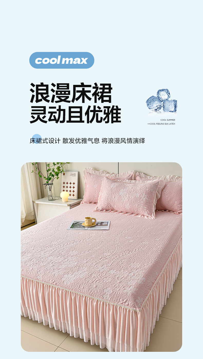 (总)畅畅家纺 2026新款聚乙烯中分子凉感冰感凉豆豆凉席席子床裙三件套-欧式伴夏,伴夏-粉,伴夏-灰,伴夏-蓝,伴夏-绿,欧式-粉,欧式-灰,欧式-蓝,欧式-绿,幸运草-粉,幸运草-灰,幸运草-蓝,幸运草-绿