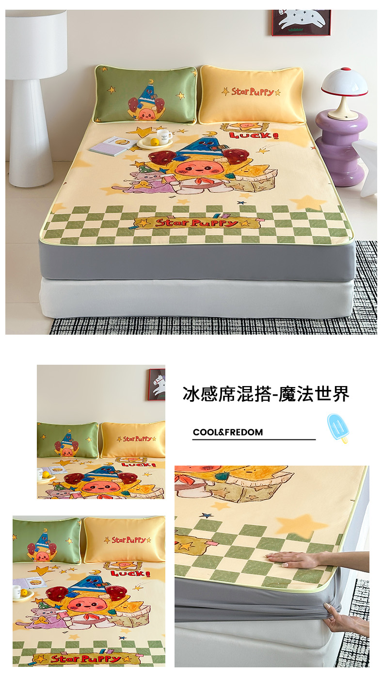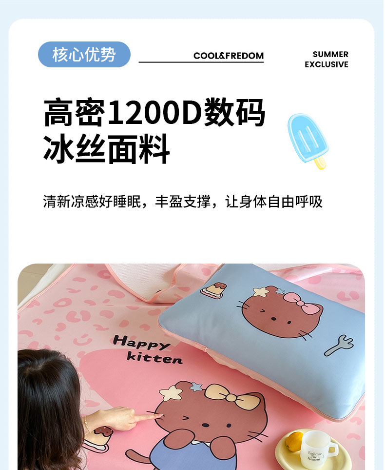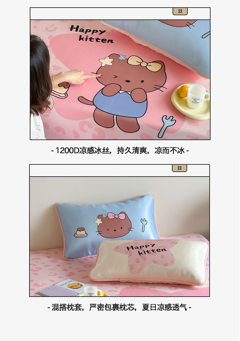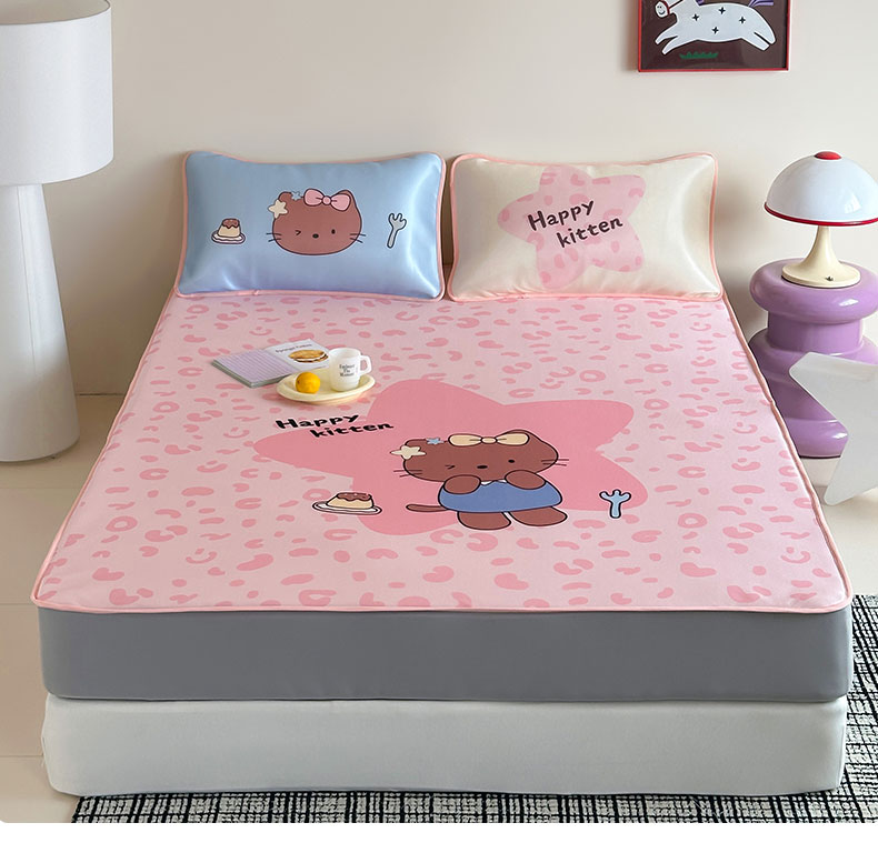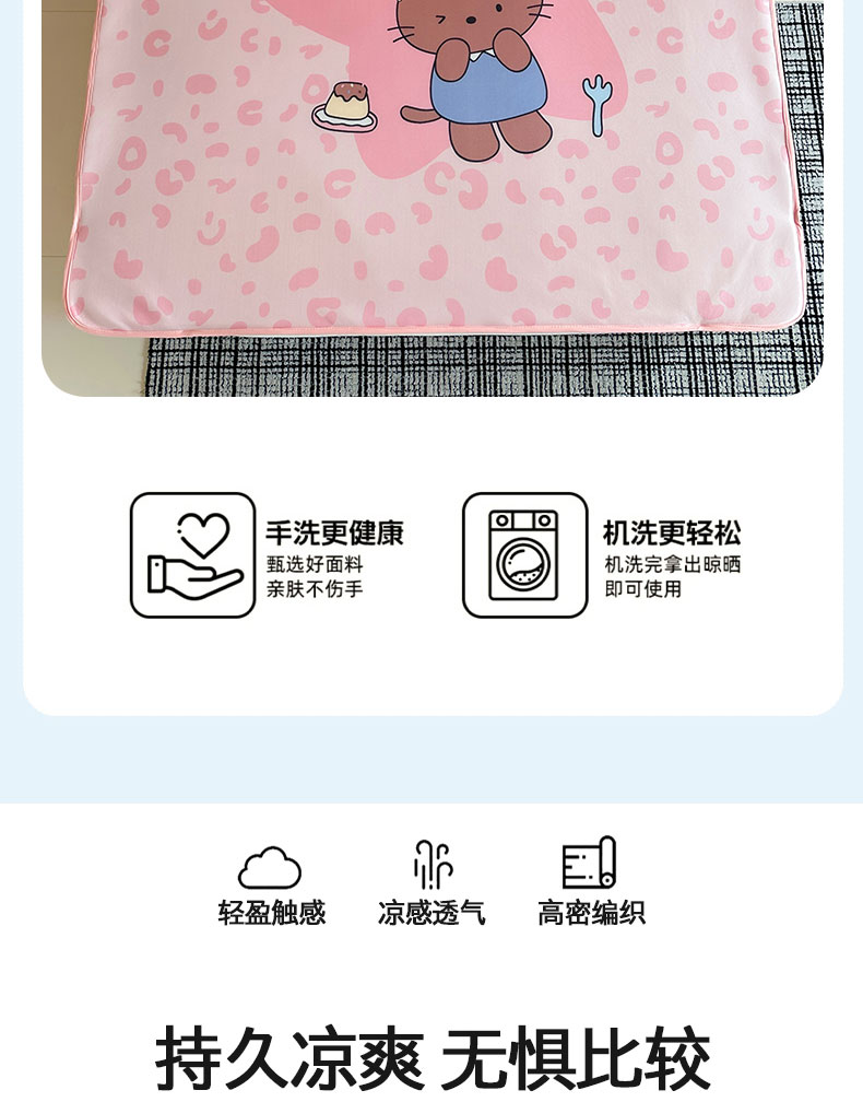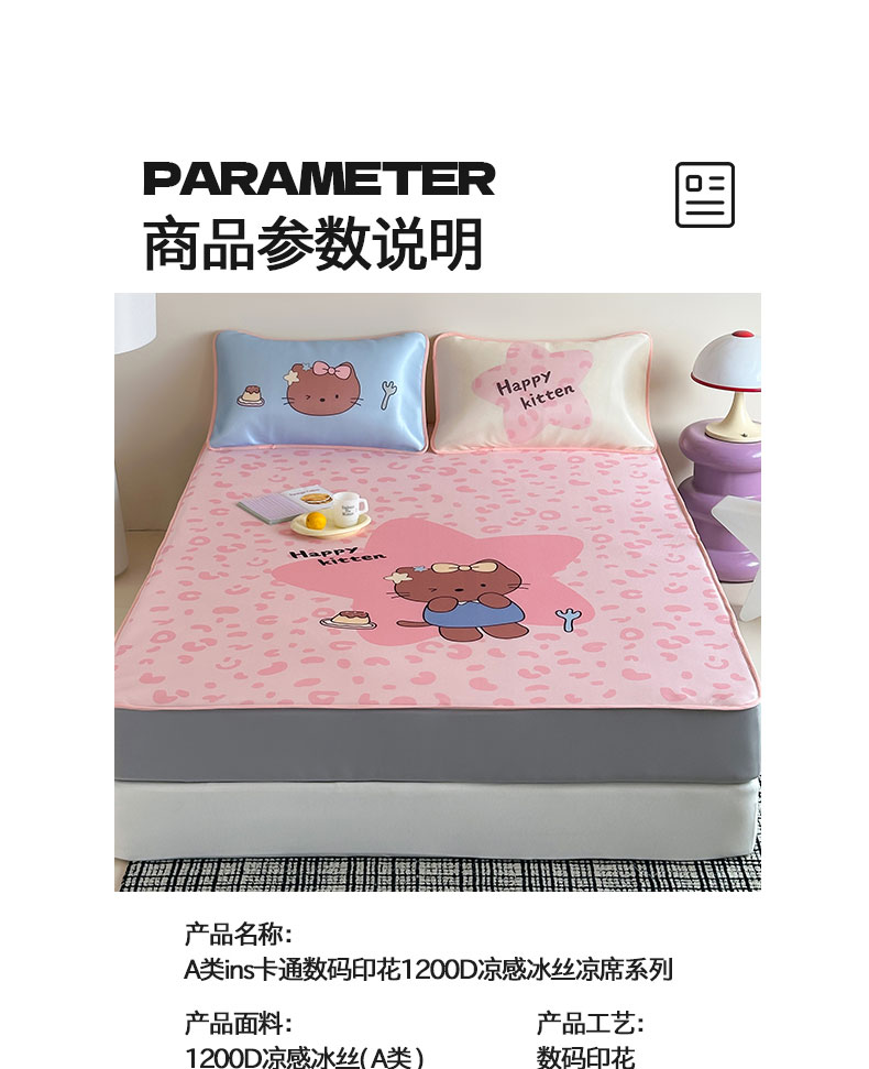 当前位置: 91家纺网 > 商品网购 > 床上用品 > 凉席 > 桃子家居 2026新款A类ins博主卡通数码印花高级品质撞色中分子1200D冰感丝凉感席冰丝三件套平铺床笠系列 冰感席混搭-粉豹夏日猫