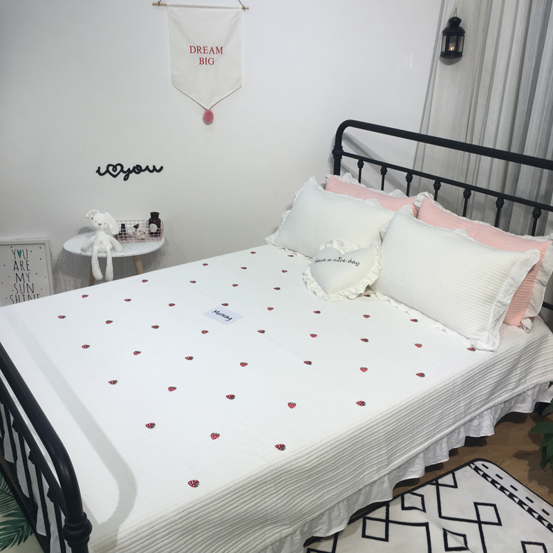 商品名称:漫调家纺 韩国床盖三件套草莓-白