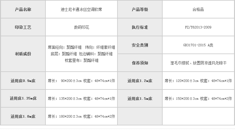 商品名称:迪士尼数码印花冰丝席三件套学生单人大板卡通凉席正版可授权电商