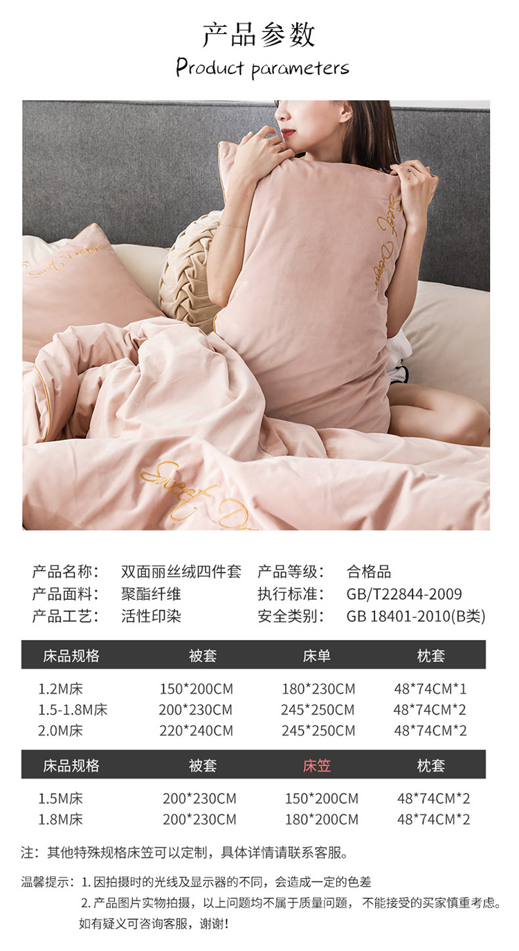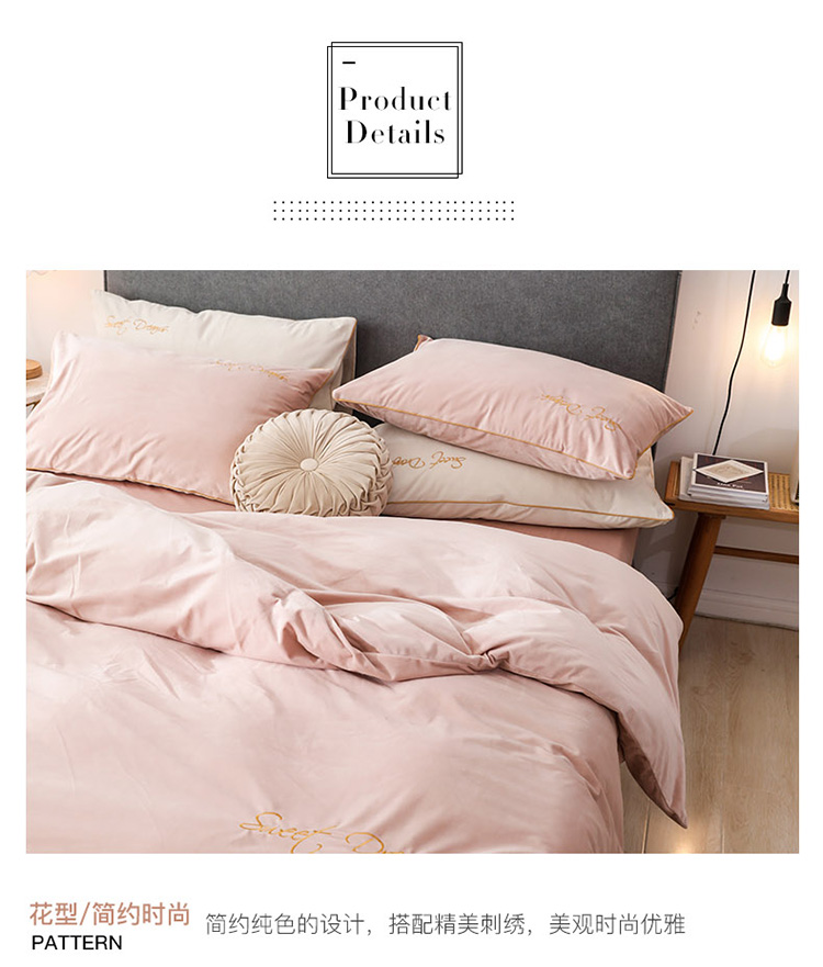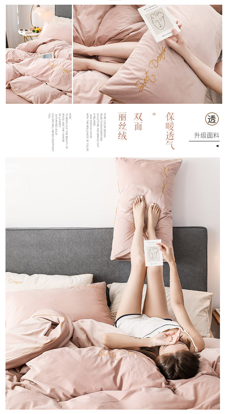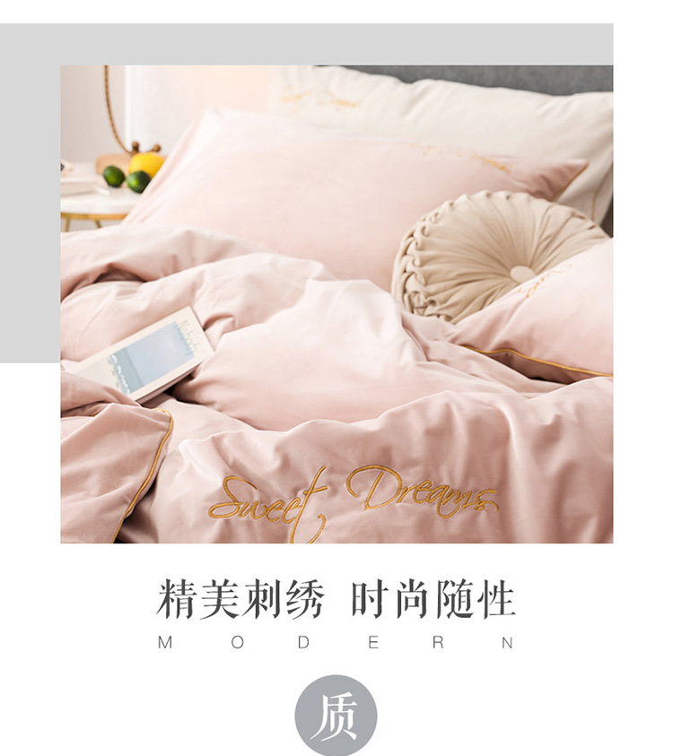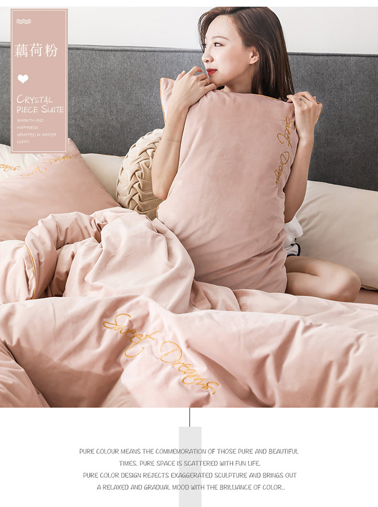商品名称:爱缦 2019新款水晶绒丽丝绒绣花工艺款四件套 藕荷粉