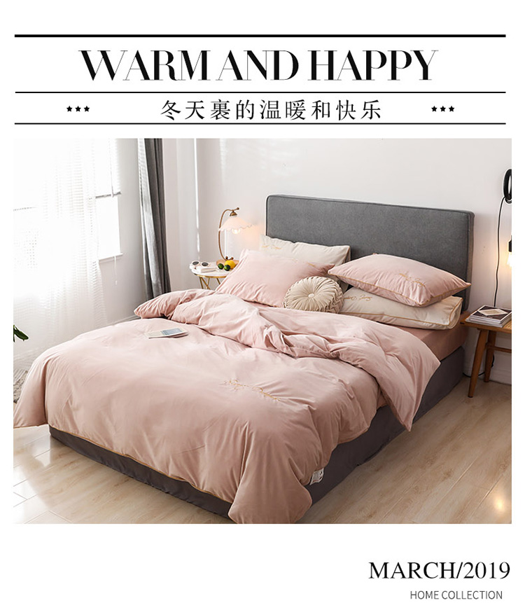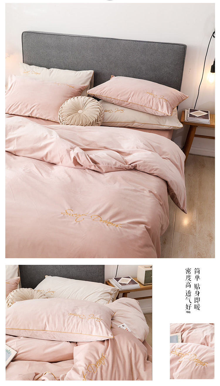 爱缦 2019新款水晶绒丽丝绒绣花工艺款四件套 藕荷粉