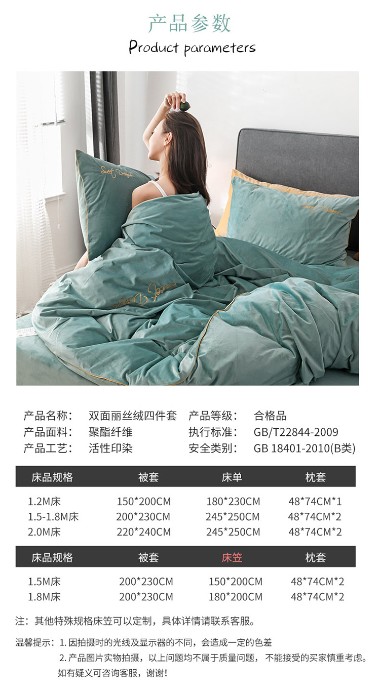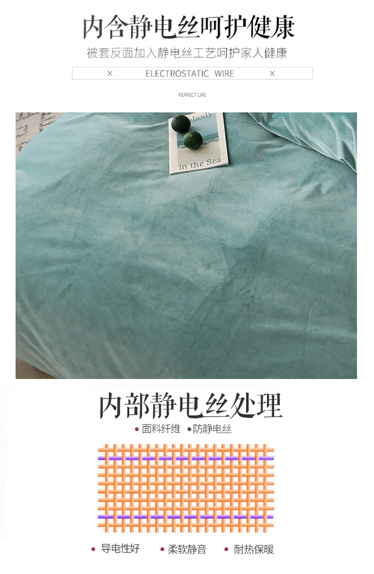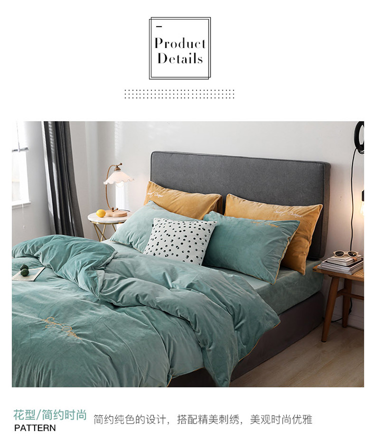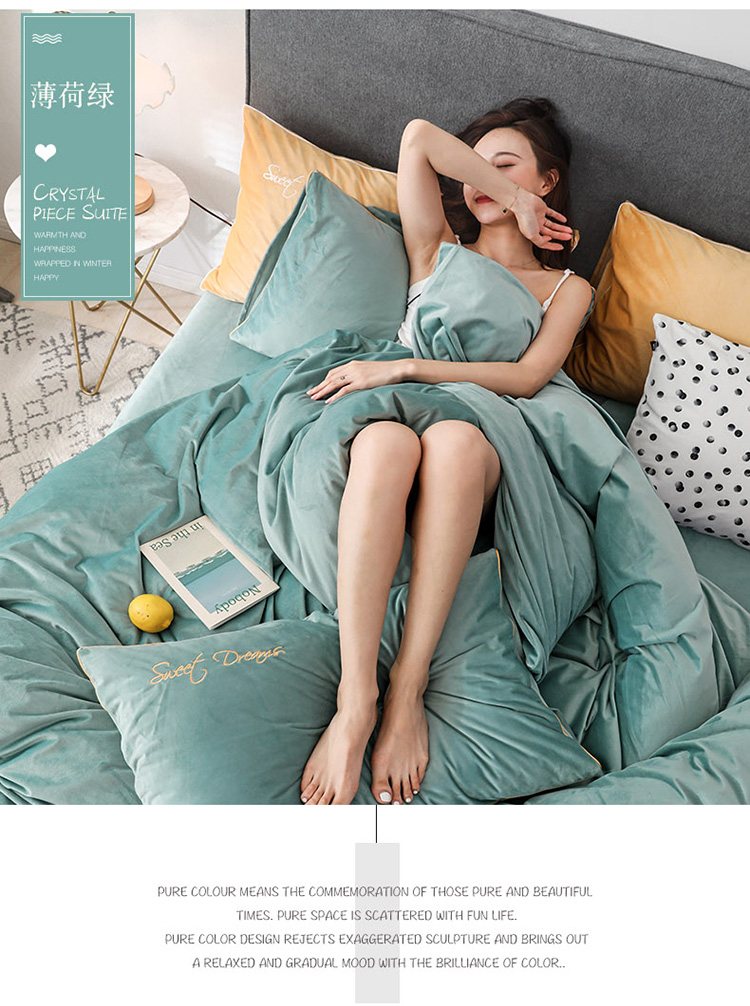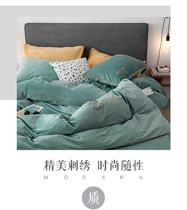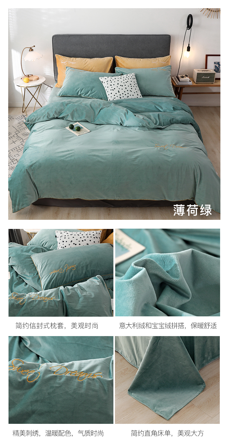 商品名称:爱缦 2019新款水晶绒丽丝绒绣花工艺款四件套 薄荷绿