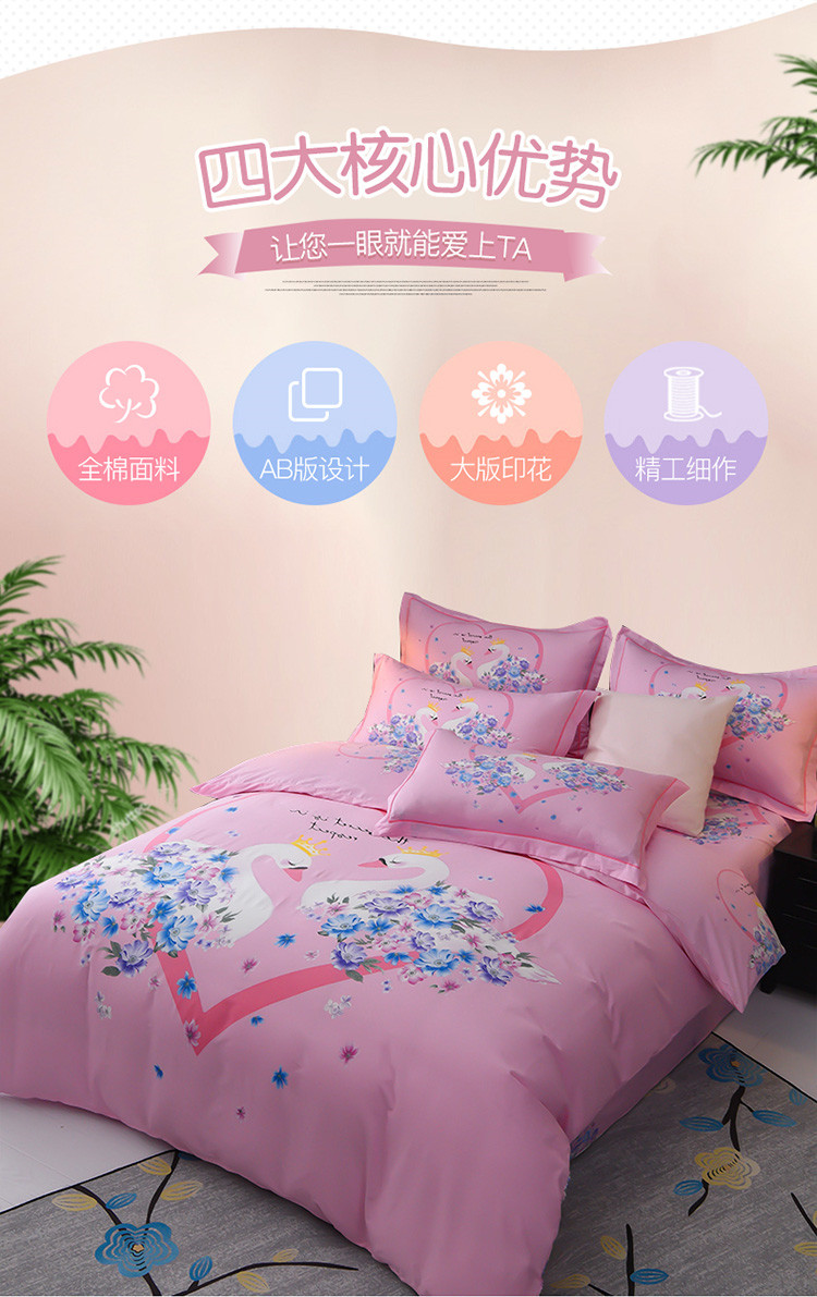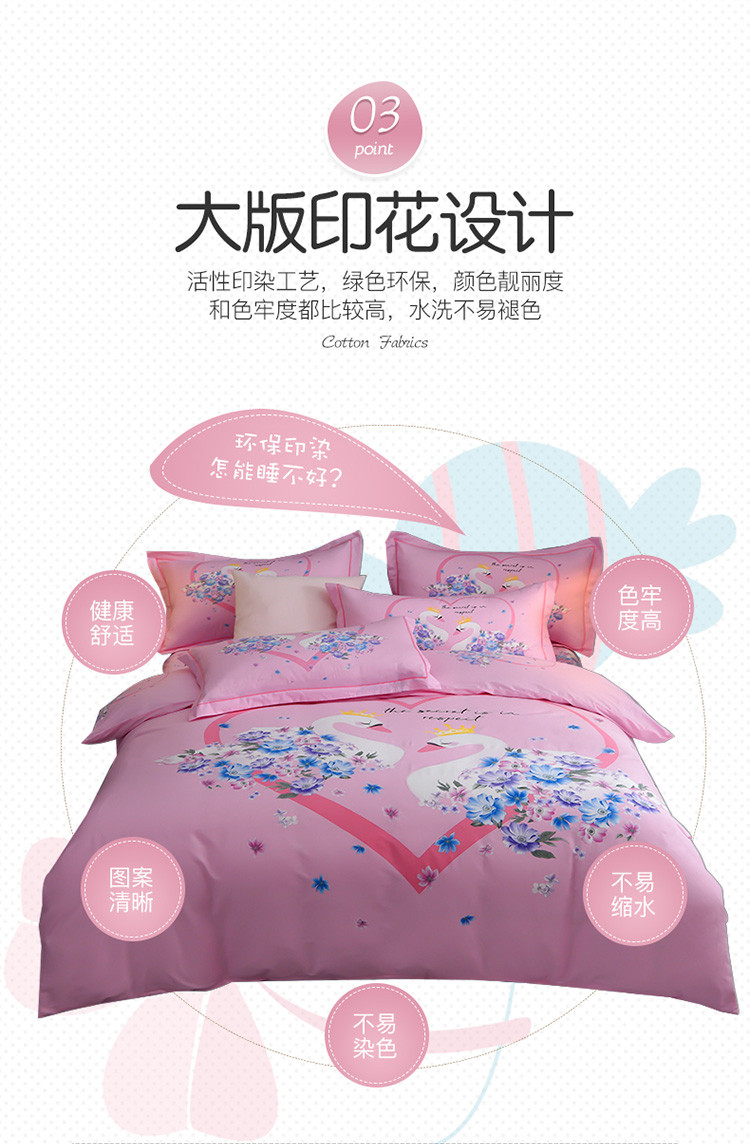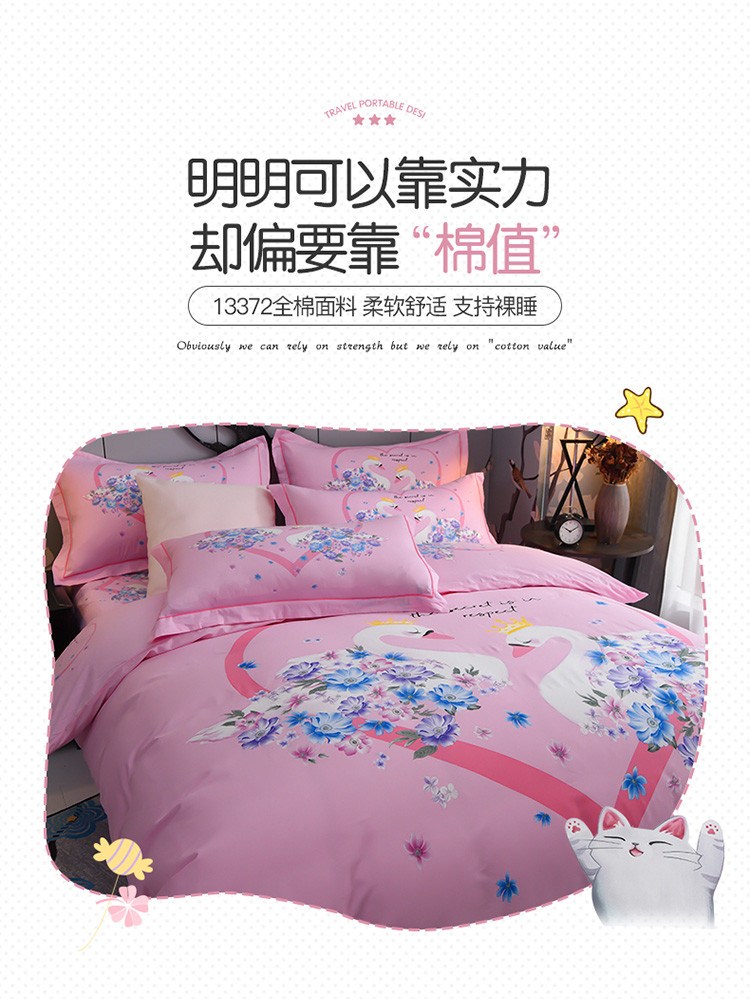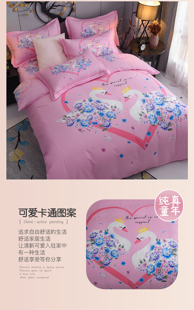 商品名称:雲归梦 2020新款13372全棉大版四件套 天鹅湖畔