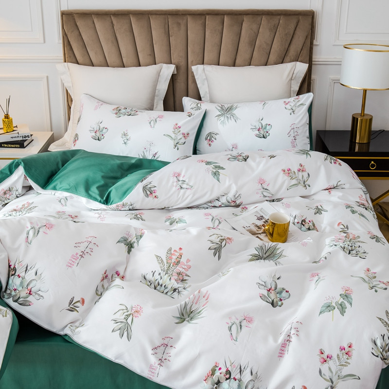 (总)优然居家纺 2025新款50支全棉纯棉印花法式双头木耳边四件套,觅棠,莫妮卡艾绿,莫妮卡罗兰,慕斯粉,薇薇安