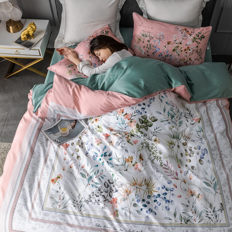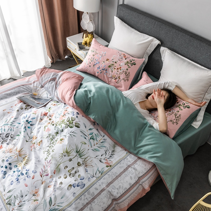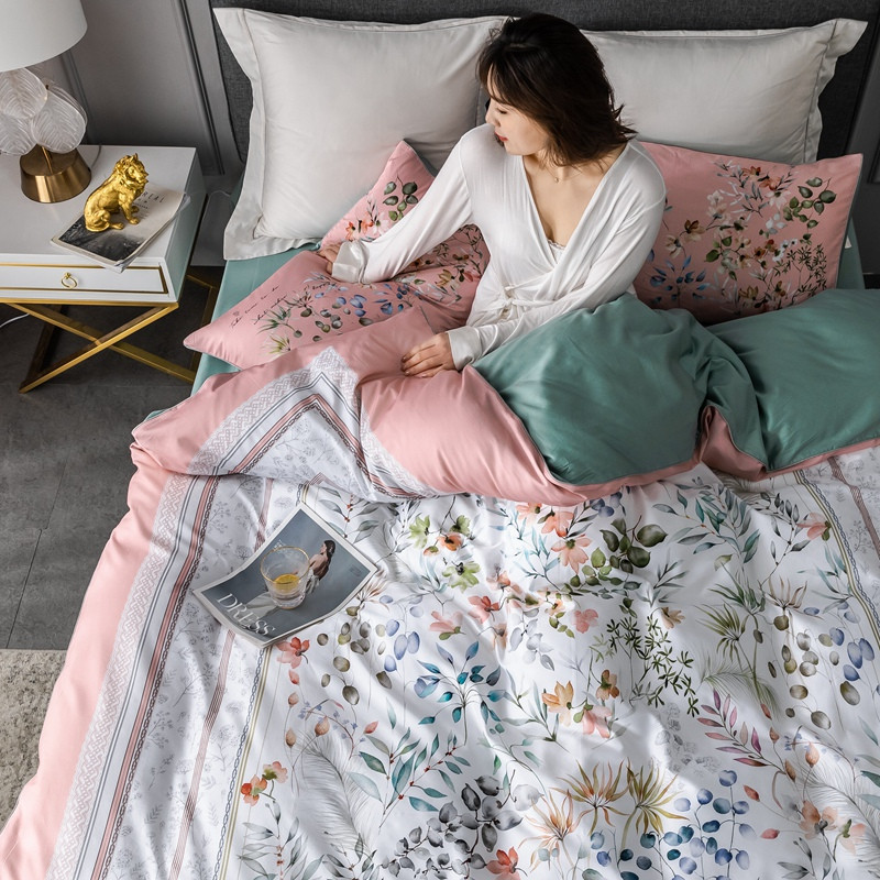 (总)优然居家纺 2025新款50支全棉纯棉印花法式双头木耳边四件套,觅棠,莫妮卡艾绿,莫妮卡罗兰,慕斯粉,薇薇安