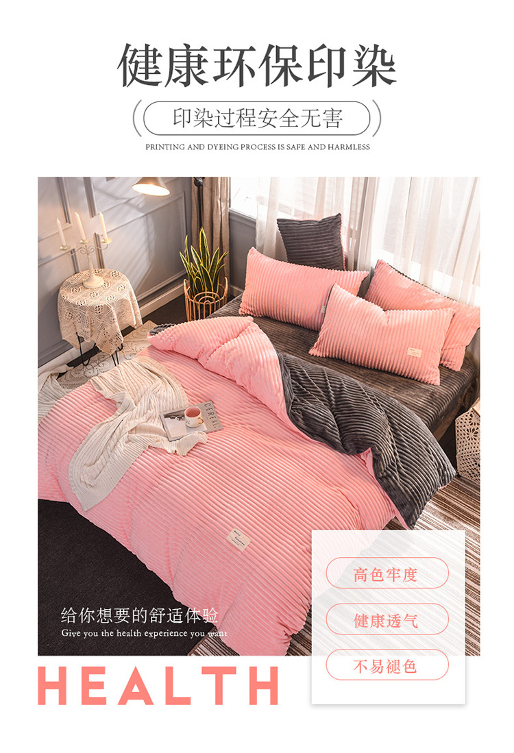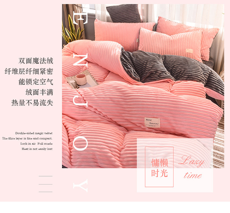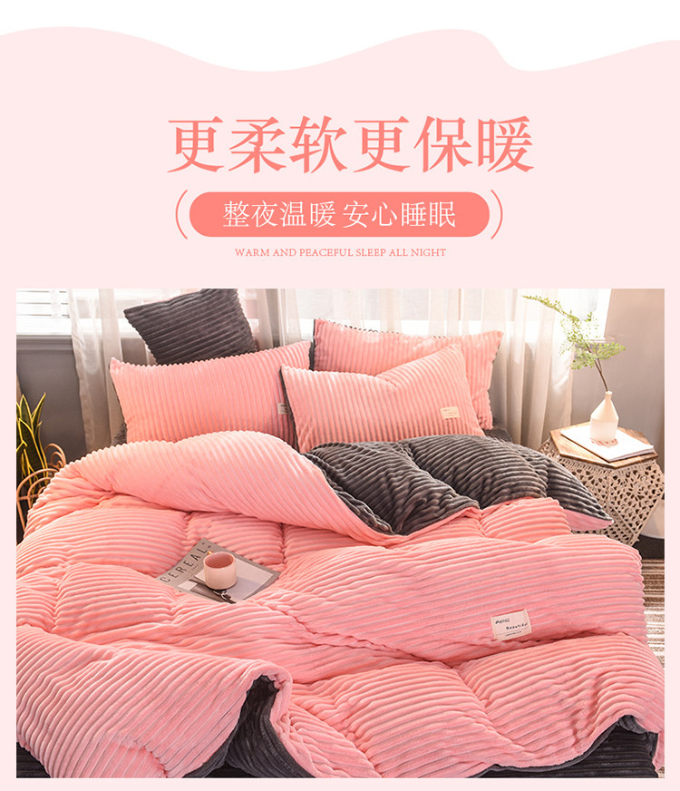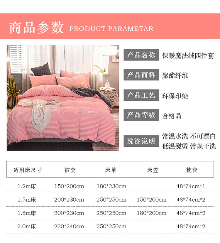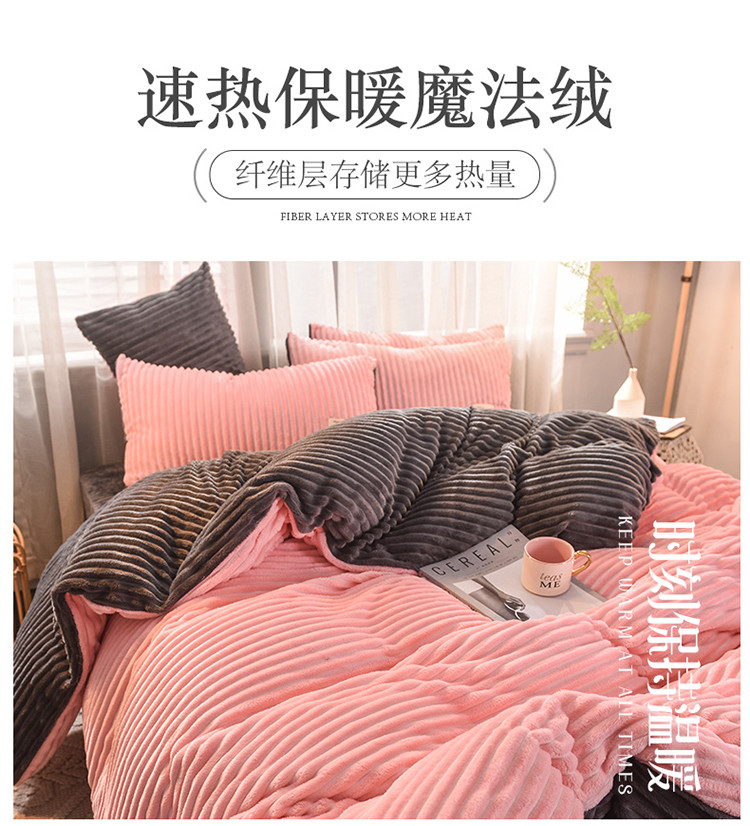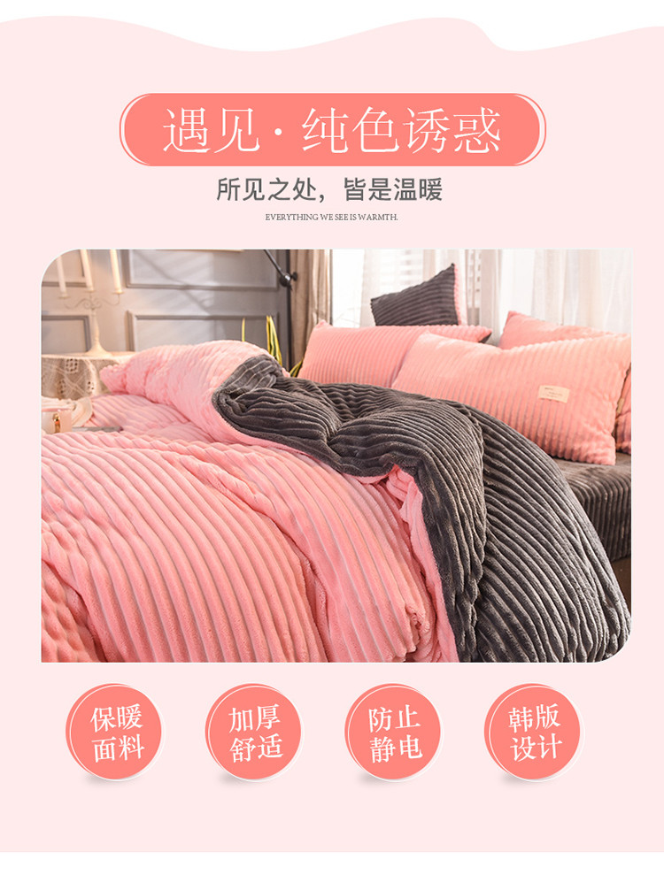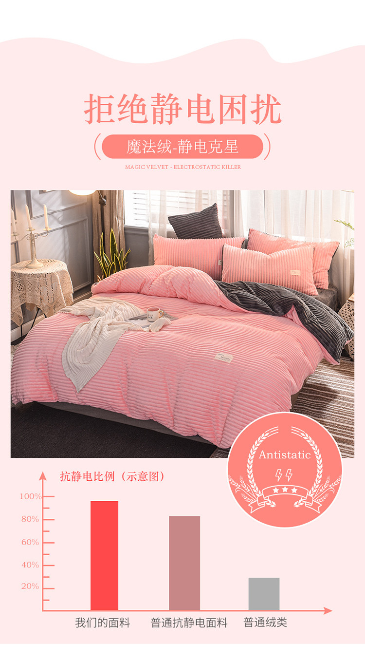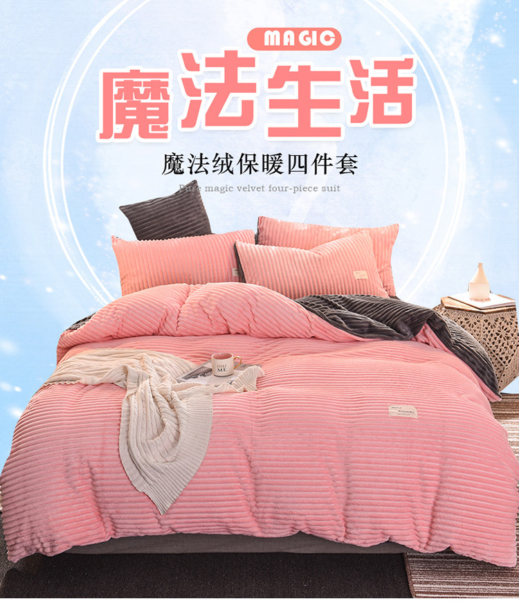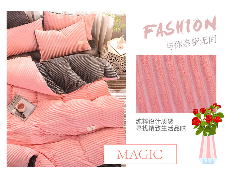 商品名称:欧冠 2019秋冬魔法绒暖绒系列四件套床单款 粉爱你