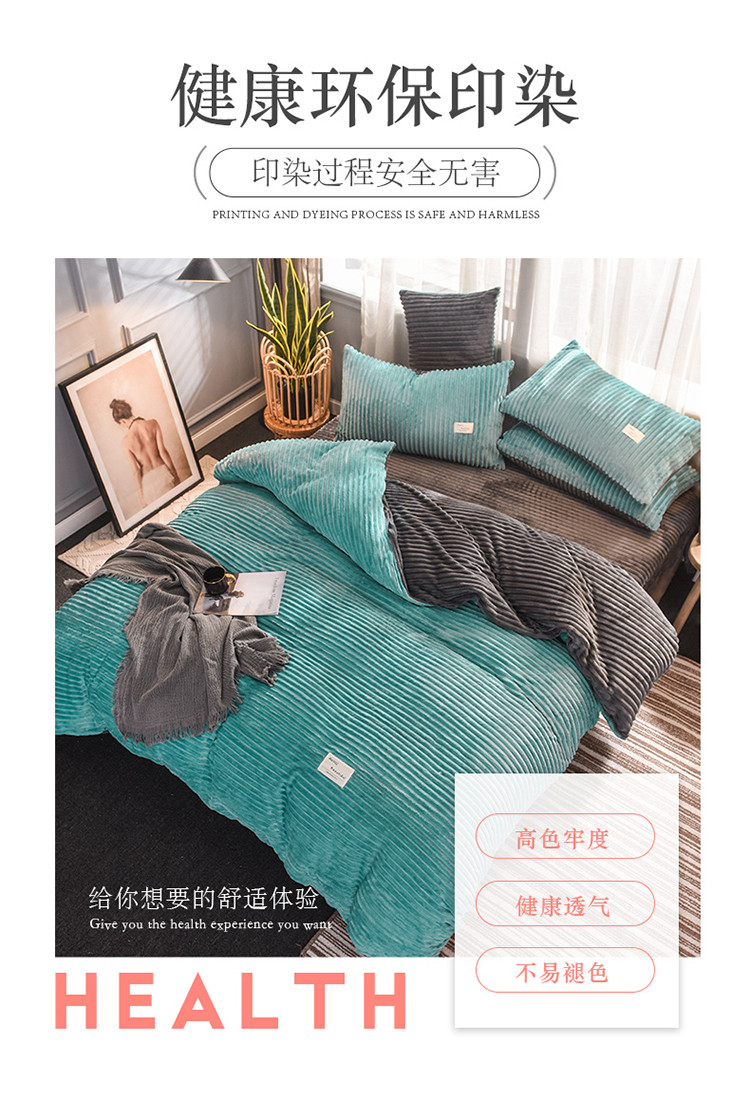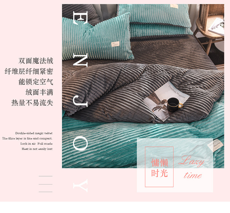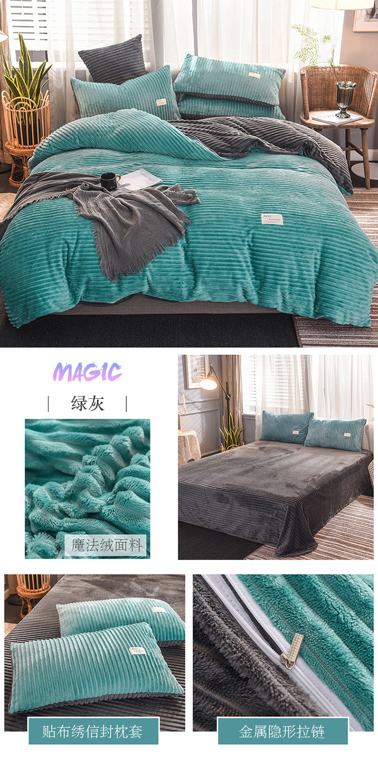 商品名称:欧冠 2019秋冬魔法绒暖绒系列四件套床单款 松石绿