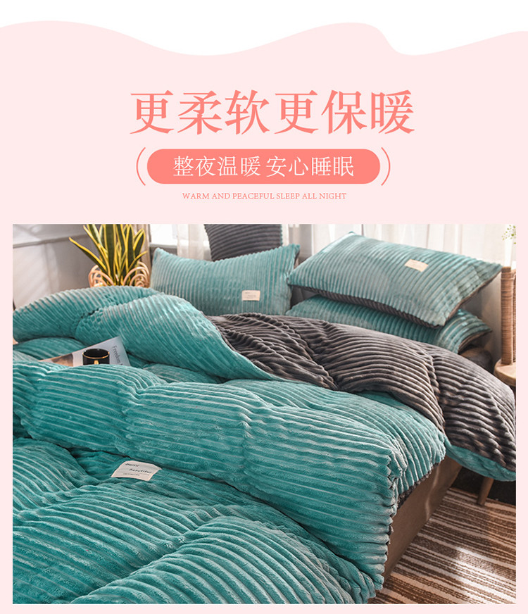 (总)欧冠家纺 2025新款条纹兔毛绒牛奶绒四件套,魔幻黑,卡其,墨绿,森林绿,雪灰,棕灰