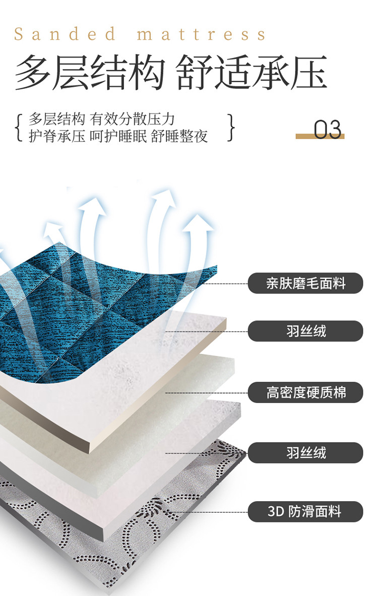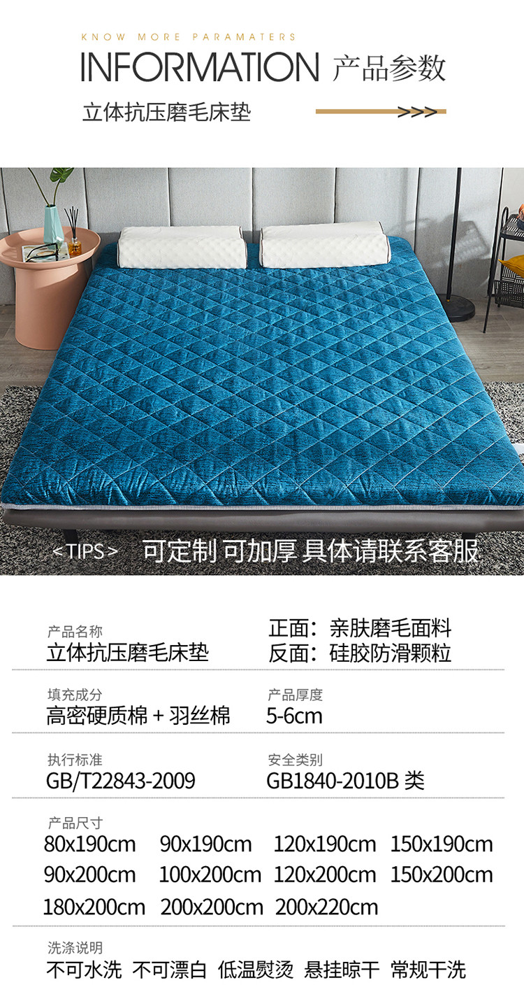 商品名称:欣罗兰 2022新款纯色单边磨毛床垫 迷雾 蓝