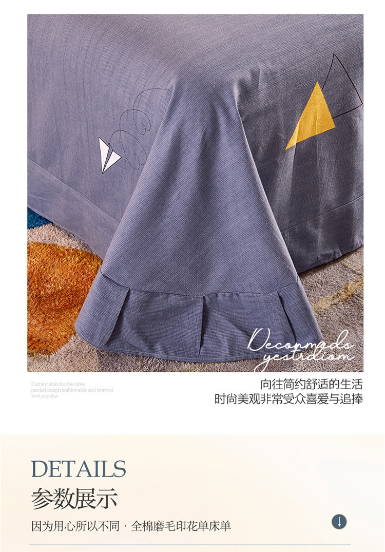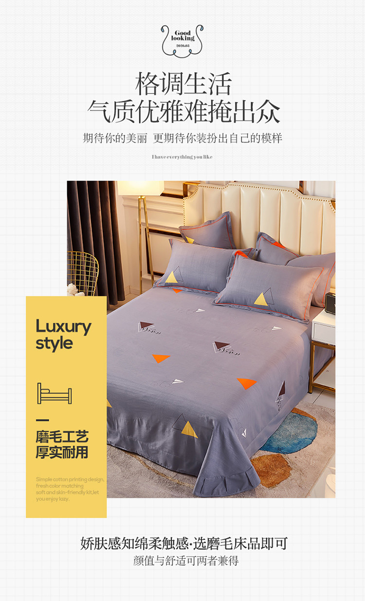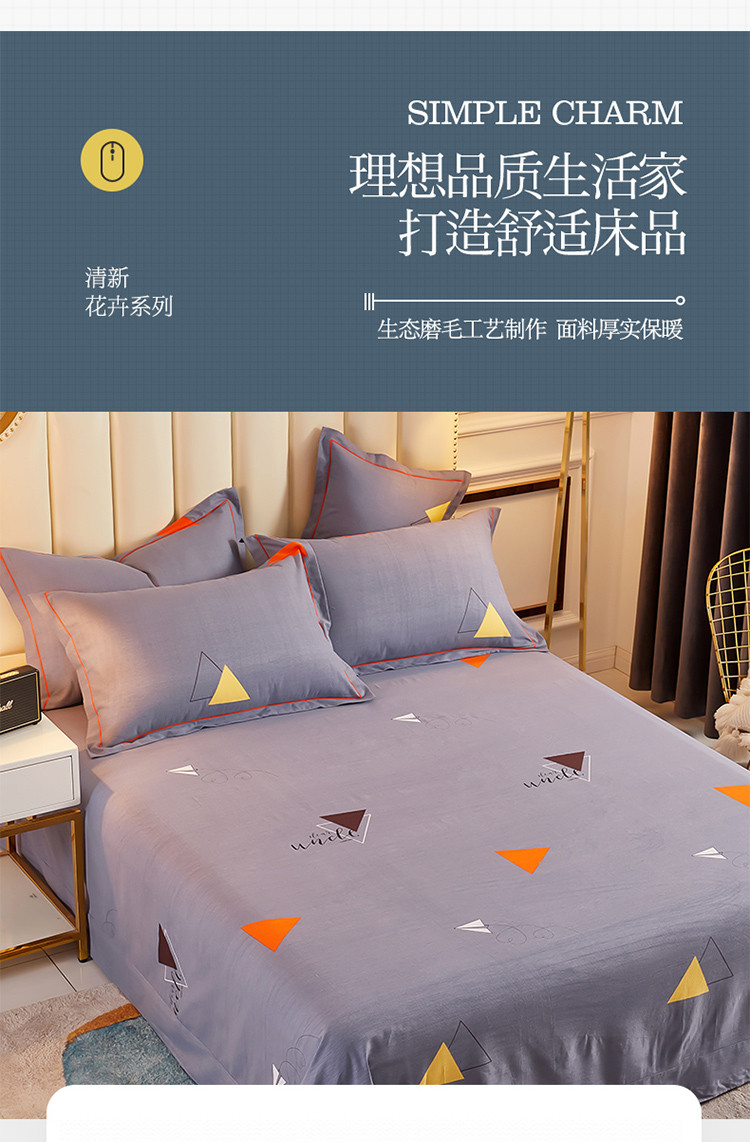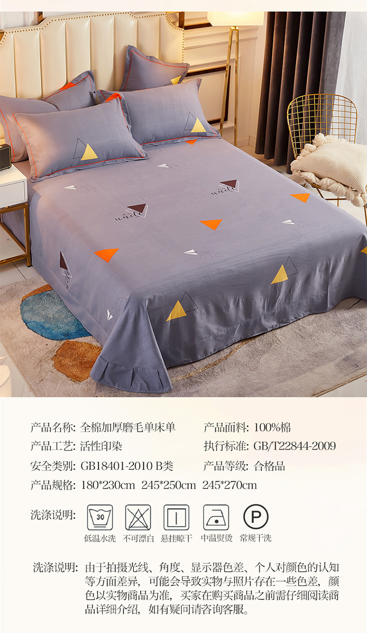商品名称:雲归梦 2020新款多规格全棉加厚磨毛单床单 几何时光-灰